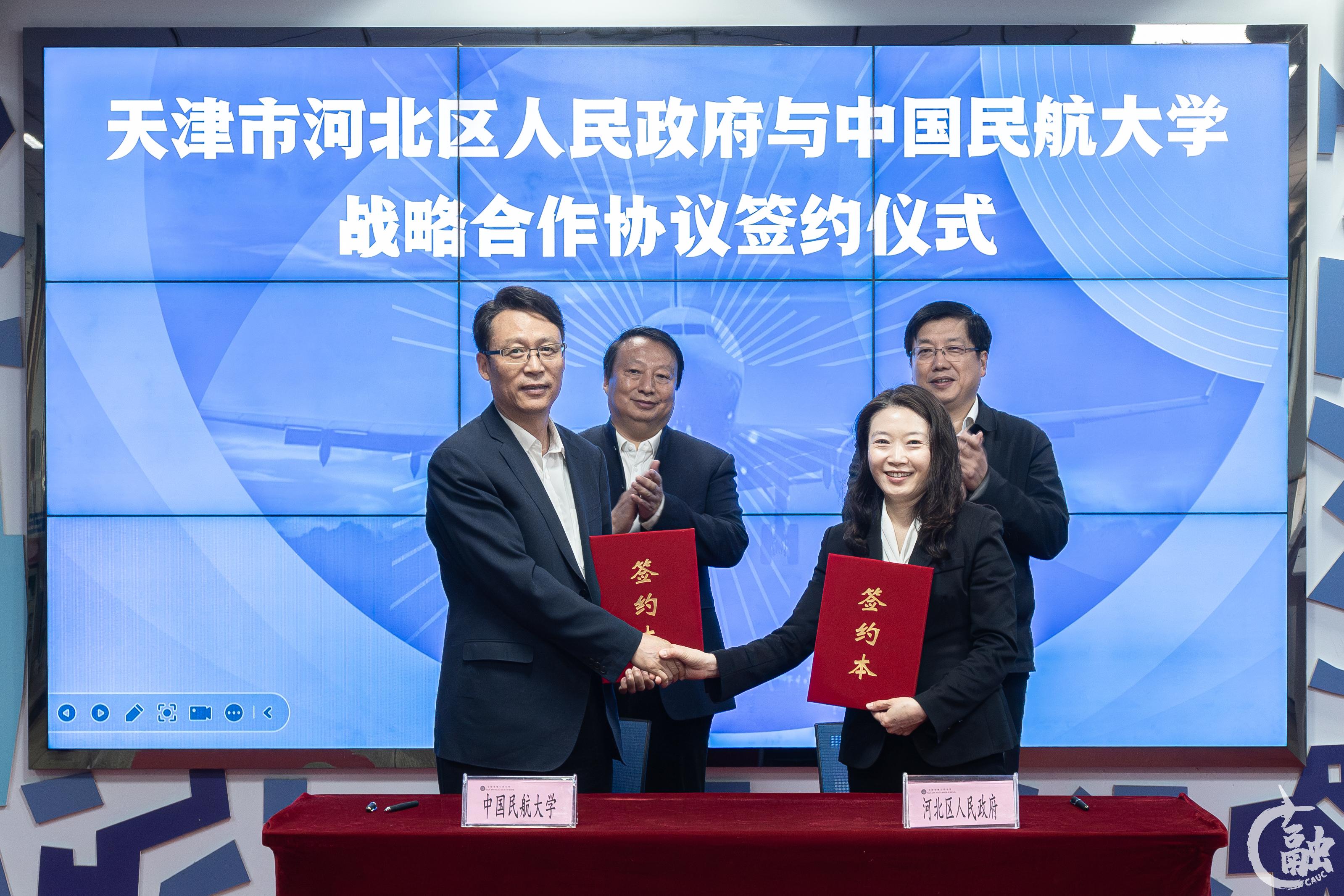 戴雷向中国民航大学长期以来对河北区的关心和支持表示感谢。他指出,河北区这片浸润着近代文明的土地,正以蓬勃之势书写新时代答卷,以推进京津冀协同发展为战略牵引,以“三新”“三量”为重要抓手,加速打造数字、航运、商贸文旅“三大服务业升级版”,以开放的胸怀、创新的姿态,加快产业结构调整,推动区域高质量发展。戴雷表示,中国民航大学的科研实力与河北区的产业沃土相得益彰。从共建航空教育研训基地点燃青少年蓝天梦想到推动科技成果转化赋能低空经济,从深化产教融合培育应用型人才到打造“中国民航大学附属中学”树立特色教育标杆,这一系列举措既是资源的互通共享,更是使命的同频共振。双方签署战略合作协议是校地共进的里程碑,更是共赢未来的新起点,必将为河北区产业升级注入科技活力,为中国民航大学成果转化开辟广阔天地。
