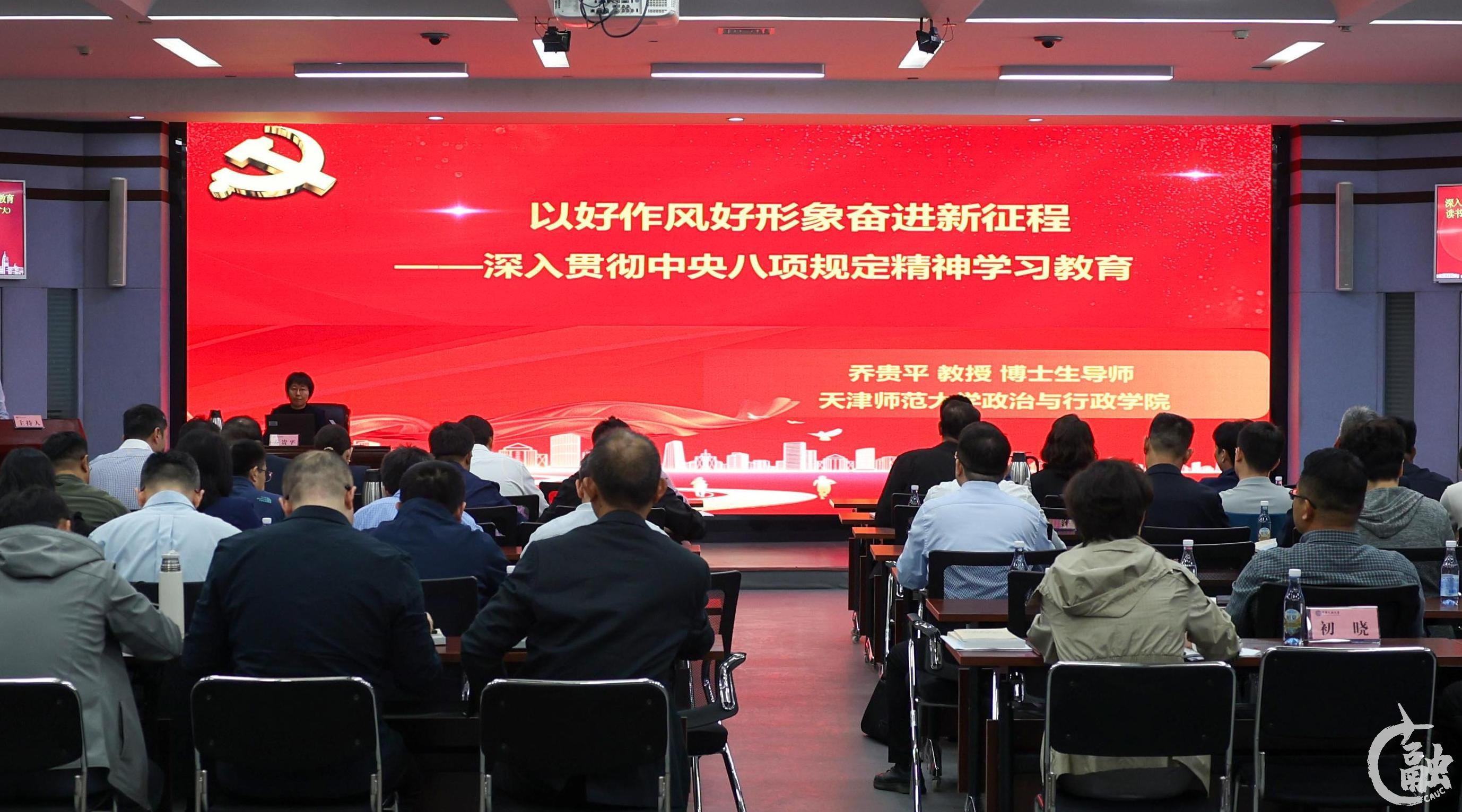 天津师范大学政治与行政学院教授乔贵平以《以好作风好形象奋进新征程——深入贯彻中央八项规定精神学习教育》为题作专题辅导。讲座从“为何学:充分认识学习教育的重要意义”“学什么:深学细悟中央八项规定及其实施细则精神”“怎么干:锲而不舍贯彻中央八项规定精神”三个维度,引导学员充分认识贯彻中央八项规定精神学习教育的重要意义,要学好用好《习近平关于加强党的作风建设论述摘编》,坚持学以致用、知行合一,以好作风好形象在新征程上展现新担当新作为,为进一步全面深化改革、奋力谱写中国式现代化天津篇章提供有力保障。