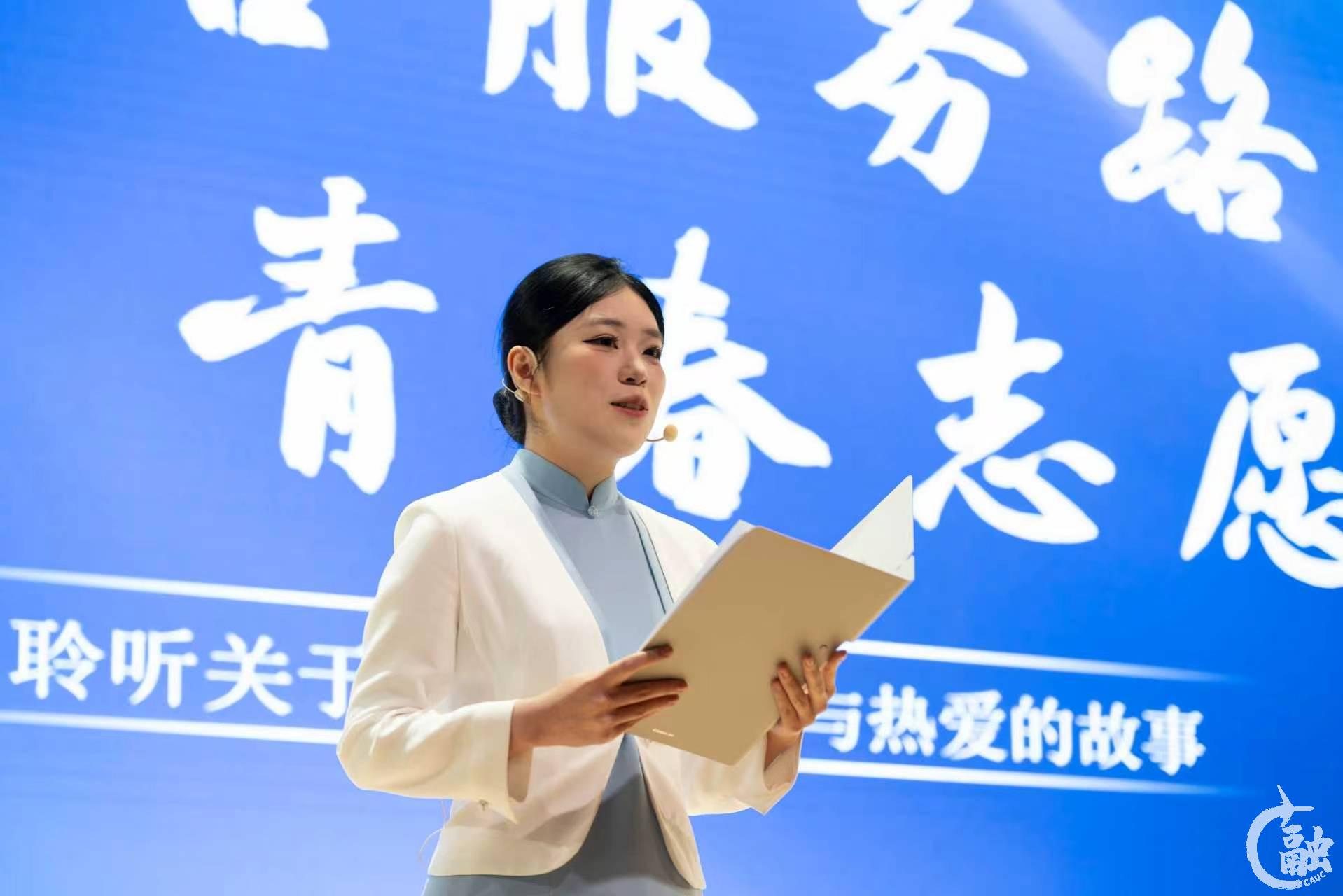 活动在志愿服务短片中拉开帷幕。短片生动再现了中国民航大学志愿者在各类一线岗位上的坚守与奉献,全方位展现了民航学子的志愿风采与责任担当。随后,首届研究生支教团成员晏琦以《追光而遇,沐光而行》为题,分享她远赴西部支教的青春故事,讲述出民航学子跨越山海、以知识浇灌西部教育希望的暖心历程,让现场师生深受触动。