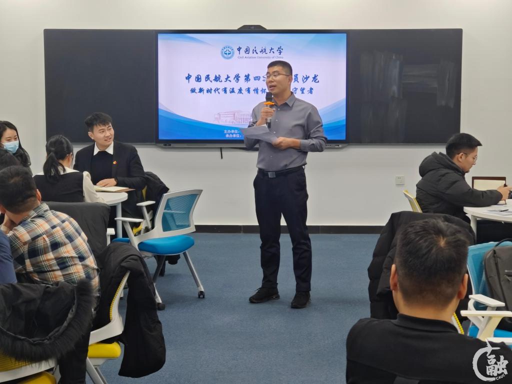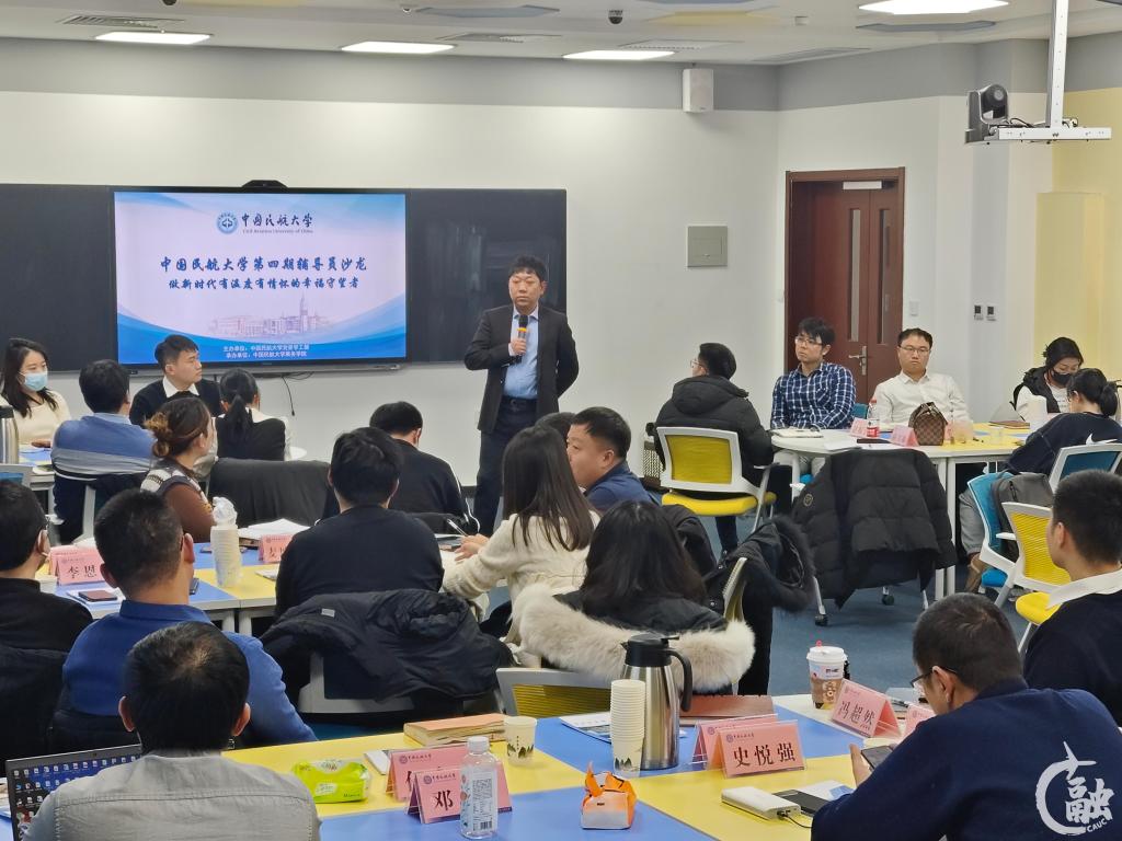 本网讯 日前,中国民航大学第四期辅导员沙龙在东丽校区亲民楼智慧教室举办。本期沙龙以“做新时代有温度有情怀的幸福守望者”为题,由党委学工部主办、乘务学院承办,交通科学与工程学院、空中交通管理学院、航空工程学院相关负责人围绕辅导员职业情怀畅谈工作思考。