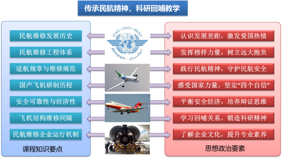 交通科学与工程学院贾宝惠负责的《维修工程分析》课程,面向航空交通运输(航空器智能运维工程方向)、交通运输工程(航空器智能运维与健康管理方向)、航空宇航科学与技术及航空工程专业的硕士研究生开设,2021年入选天津市课程思政示范课程。该课程以“传承民航精神,科研回哺教学”为主题,大力推动工科研究生课程思政改革,通过深入挖掘课程所蕴含的丰富思政元素,课程团队提出“传承+情怀+回哺”课程思政教学理念,将航空器维修工程发展的理论和技术前沿融于价值理念塑造,将立德树人与专业课程有机融合,大大丰富了专业课育人内涵,在实现知识传授与素质教育的双重功能上取得显著成效。