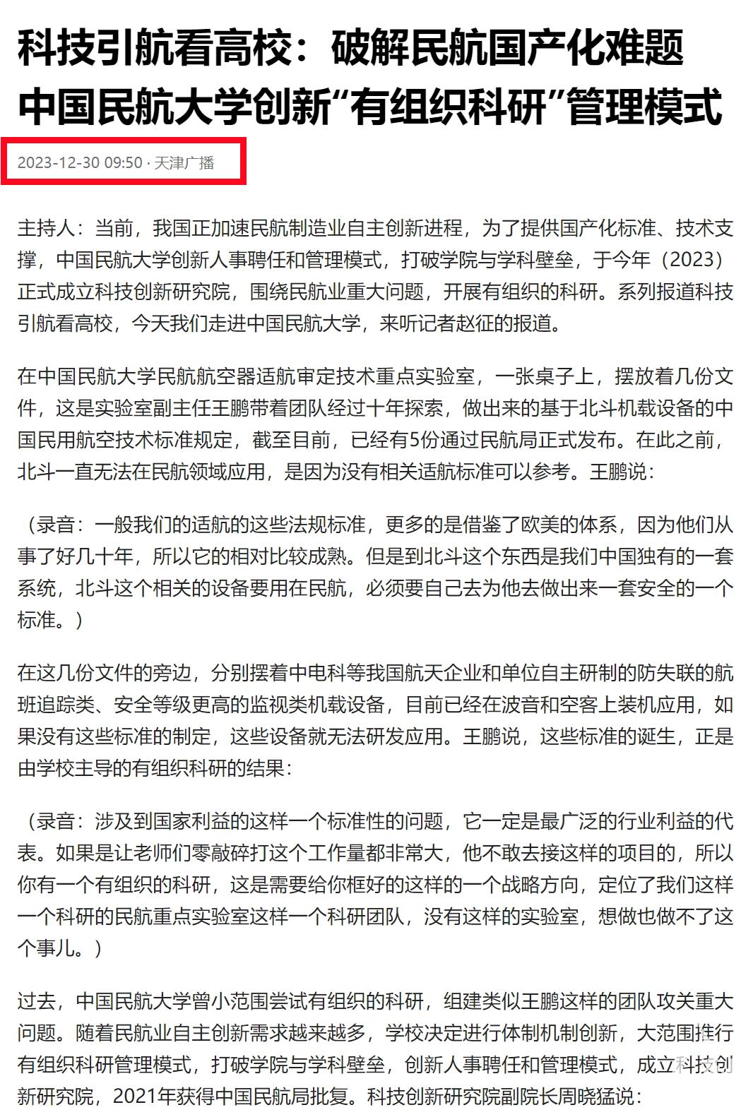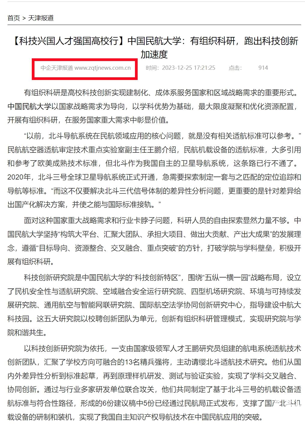 围绕学校五大研究院做好有组织的科研,媒体记者深度报道了航电系统适航技术研究型创新团队、双碳和发动机安全性研究型创新团队、航空地面特种设备研究型创新团队结合团队的任务目标,瞄准国家、省部级重大项目组织实施科研的工作实践,展示中国民航大学面向国家和民航行业重大战略需求,面向世界科技前沿和国民经济主战场,在关键核心技术领域,围绕国家和行业重点领域、重点产业,组织产学研协同攻关,实现高水平科技自立自强取得的耀眼成绩。