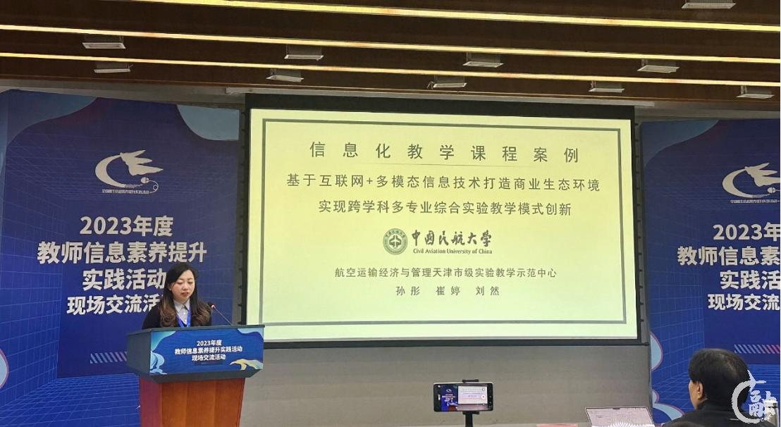 会上,中国民航大学航空运输经济与管理天津市级实验教学示范中心教师孙彤展示课程案例。该课程基于互联网+多模态信息技术打造虚实结合的商业生态环境,实现跨学科多专业的综合实验教学模式创新,改变传统学习方式,为学生带来前所未有的高沉浸感学习体验,案例产出多项成果,获得多个奖项,得到与会专家的一致认可和好评。