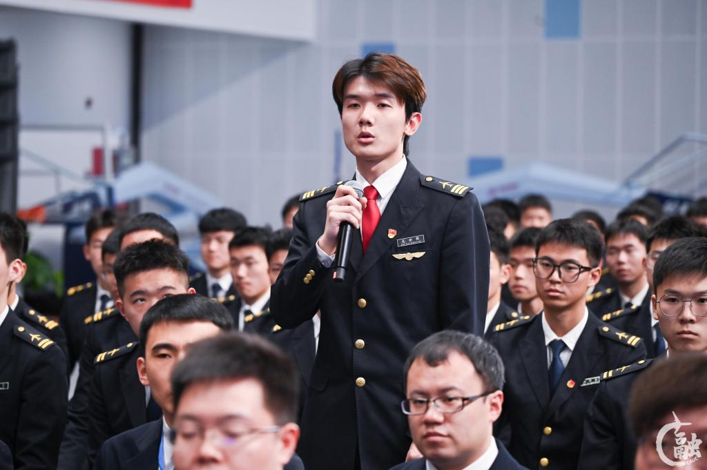 中国民航大学学生代表在现场与领导嘉宾、参赛选手展开互动交流。