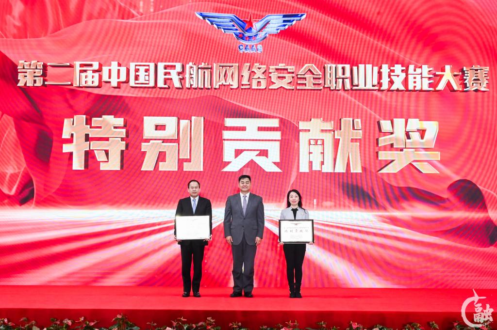 本网讯 12月6日上午,第二届中国民航网络安全职业技能大赛在中国民航大学宁河校区体育馆闭幕。中国民航工会常务副主席王铎,全国民航团委书记孙珊珊,民航局人事科教司编制工资处处长李建新,中国民航大学校长丁水汀,民航华北地区管理局副局长赫焱,民航西北地区管理局党委副书记、纪委书记骆宏平,民航局空管局副局长杨海红,民航局职业技能鉴定指导中心副主任高扬,中国民航大学副校长杨新湦,中国民航大学工会主席王志强,民航天津监管局局长李东生等出席。大赛组委会办公室有关负责人,各参赛队的总领队、领队,参赛选手、裁判员、仲裁员,全体工作人员、新闻媒体记者以及中国民航大学师生代表参加。中国民航工会经审会主任齐金升主持闭幕式。中国民航大学获特别贡献奖。