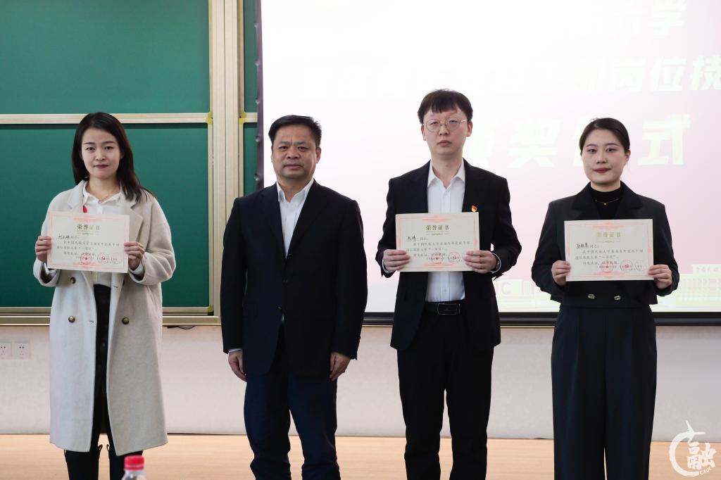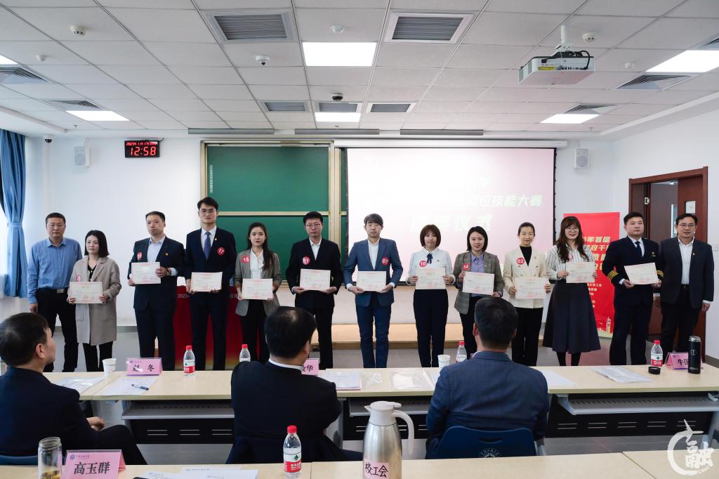 本网讯 春发其华,秋收其实;业精于勤,行成于思。11月17日,中国民航大学首届青年党政干部岗位技能大赛决赛在宁河校区公共教学楼举办。经专家评委评审,党委组织部陈博、交通科学与工程学院刘天琳、纪委办(审计监察处)唐雅蓉获得一等奖,党委保卫部(保卫处)柳立春、党委宣传部(教师工作部)于金龙、飞行分校任今鹏、发展规划与学科建设处曹益、教务处朱丽蒙、宁河校区管理中心刘阔获得二等奖,电子信息与自动化学院张梦晴、航空工程学院刘淑洁、外国语学院丁超、飞行分校张晓璇、党办校办苏芮、图书馆王添元、科技处吕洋、图书馆王佳、科技创新研究院于得水、航空工程学院辛佳、飞行分校封昊获得三等奖,其余参赛选手获得优秀奖。中国民航大学党委副书记、纪委书记徐政华,校党委常委葛维建为获奖选手颁奖,中国民航大学原党委副书记赵洪海出席。