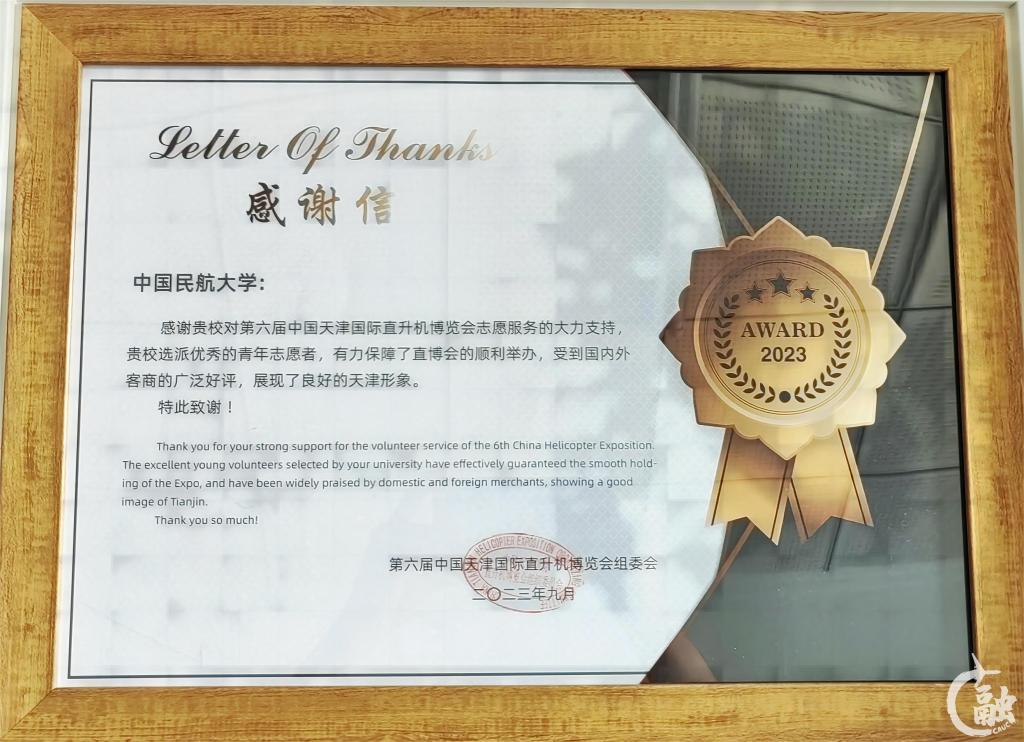 本网讯 近日,中国民航大学收到第六届中国天津国际直升机博览会组委会发来的感谢信,对学校大力支持第六届中国天津国际直升机博览会志愿服务表示感谢,对学校60名青年志愿者积极参与第六届中国天津国际直升机博览会志愿服务表示认可和表扬。