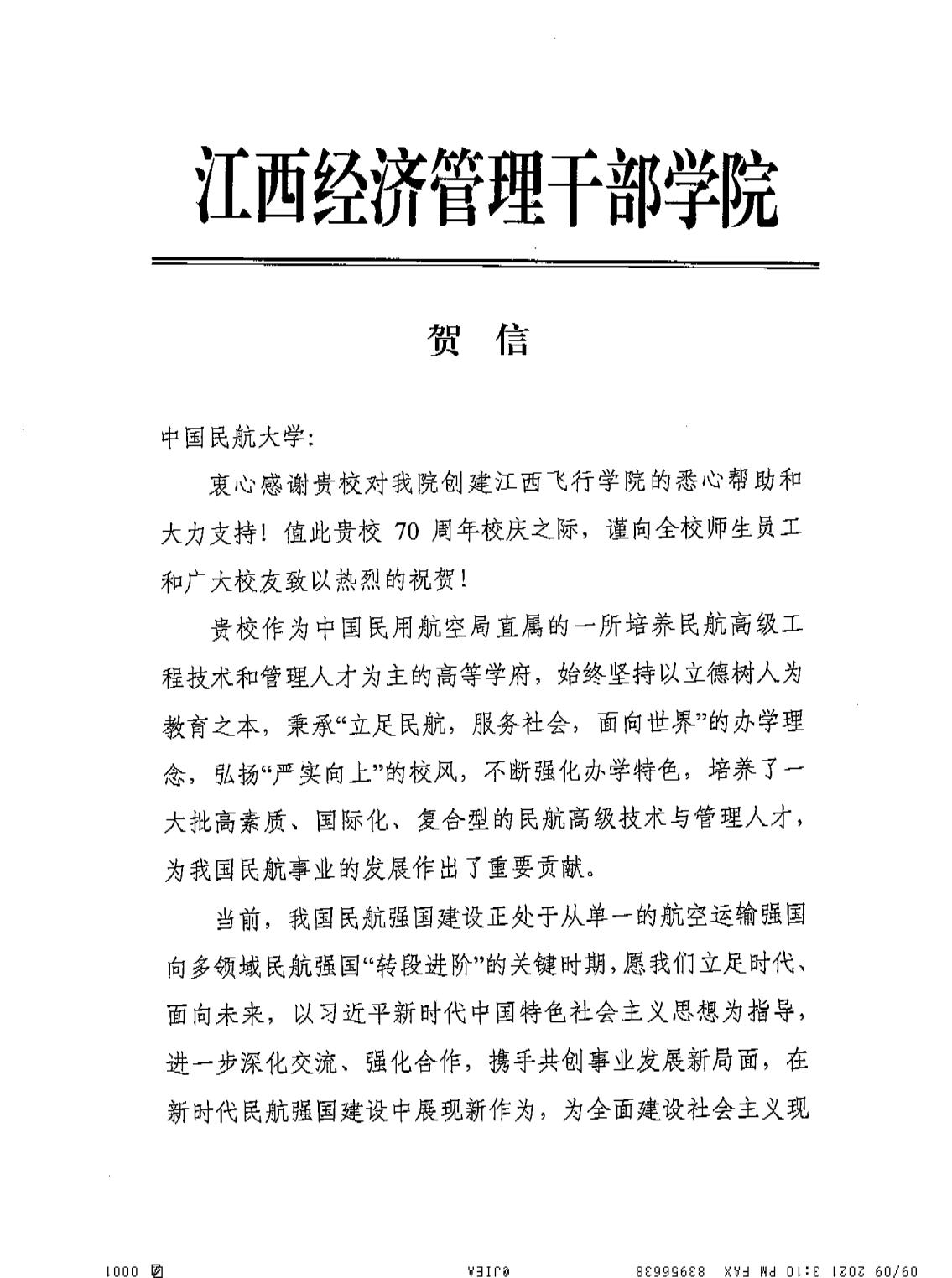 【70周年校庆】江西经济管理干部学院发来贺信