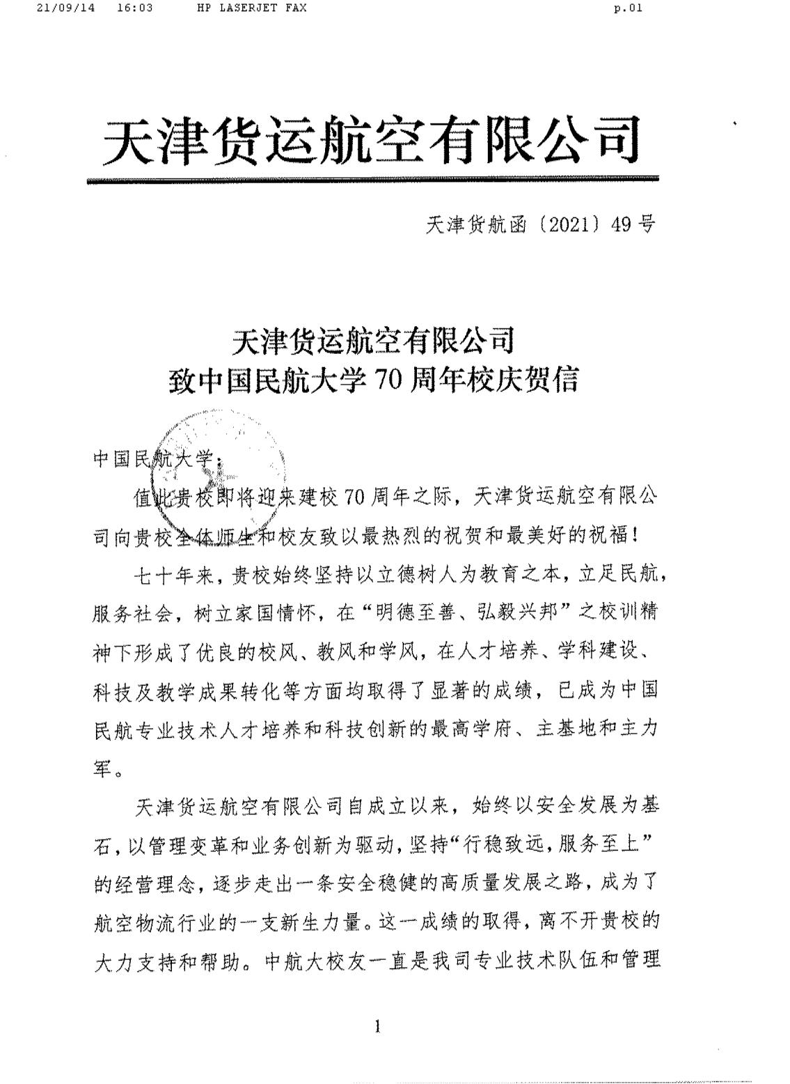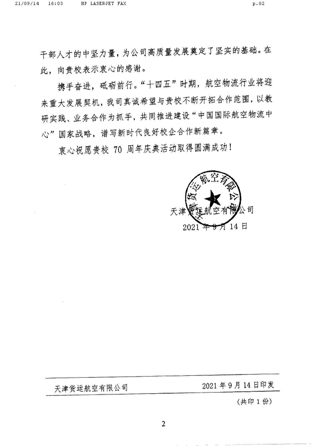 【70周年校庆】四川省机场集团有限公司发来贺信