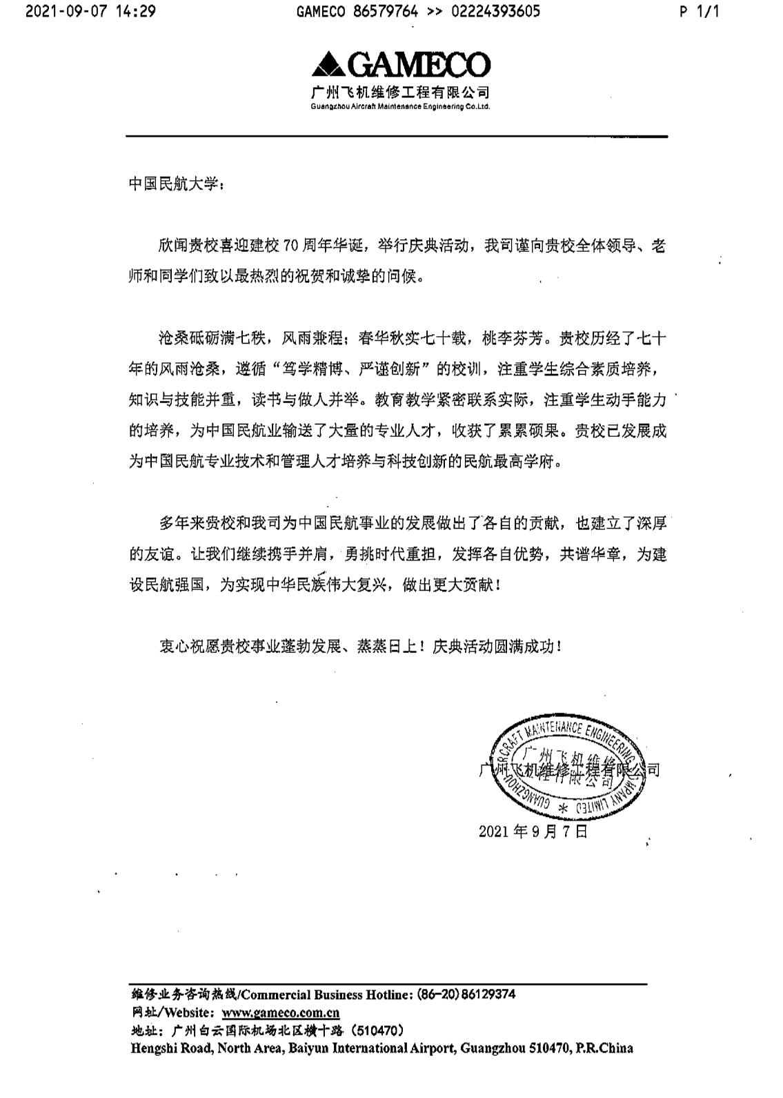 【70周年校庆】广州维修工程有限公司发来贺信