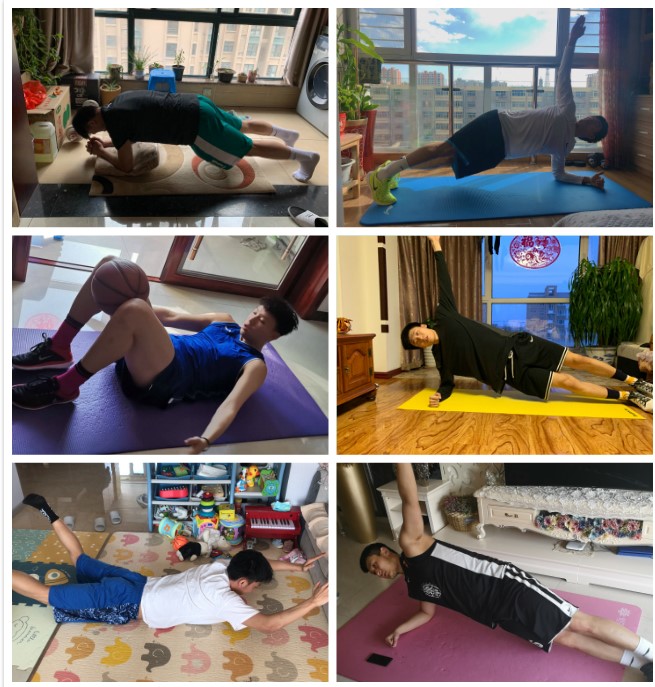 校男篮队员居家进行体能训练