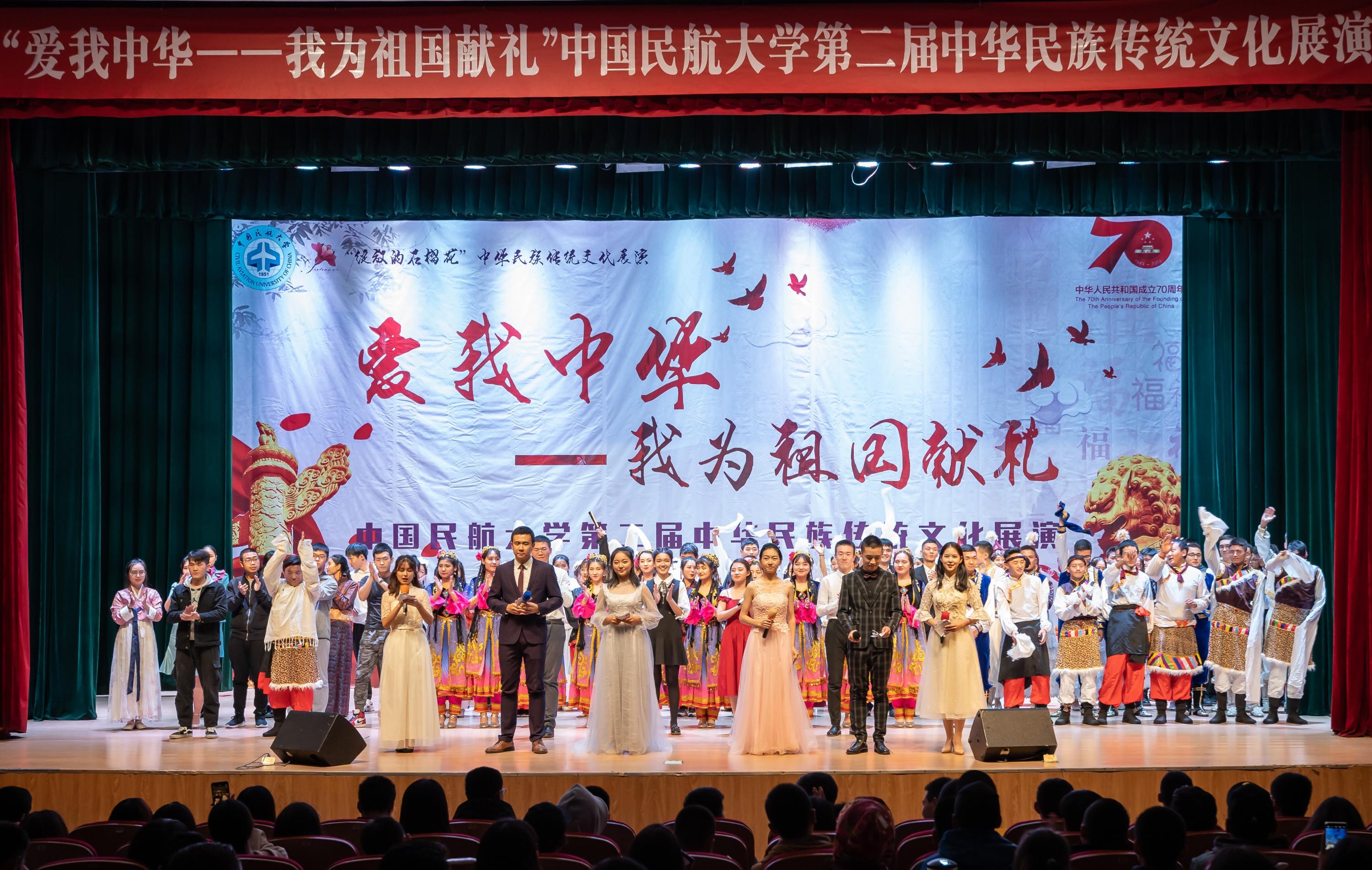 本网讯 10月25日,中国民航大学第二届民族文化展演在中国民航大学北校区礼堂拉开帷幕,展演以“爱我中华——我为祖国献礼”为主题,近700名师生到场观看,现场座无虚席。