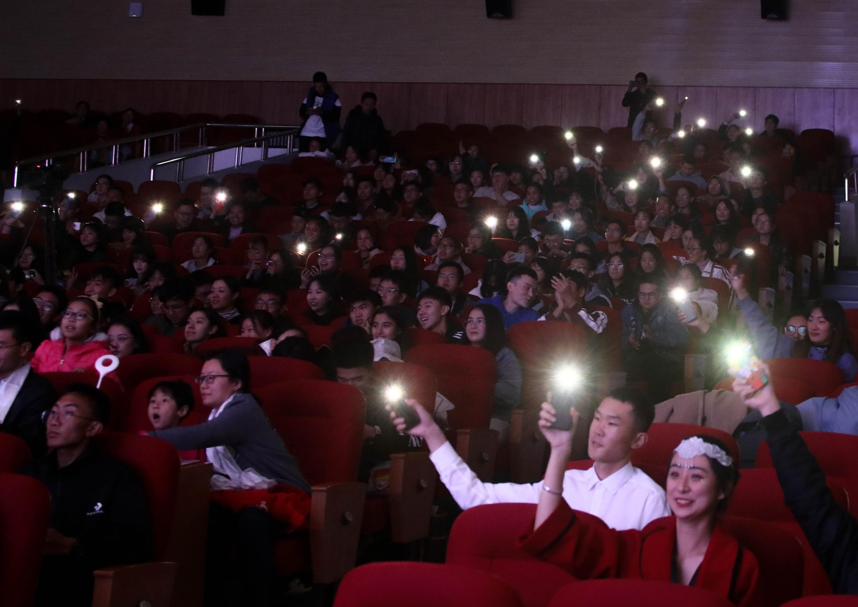 观众们点亮闪光灯与演员互动