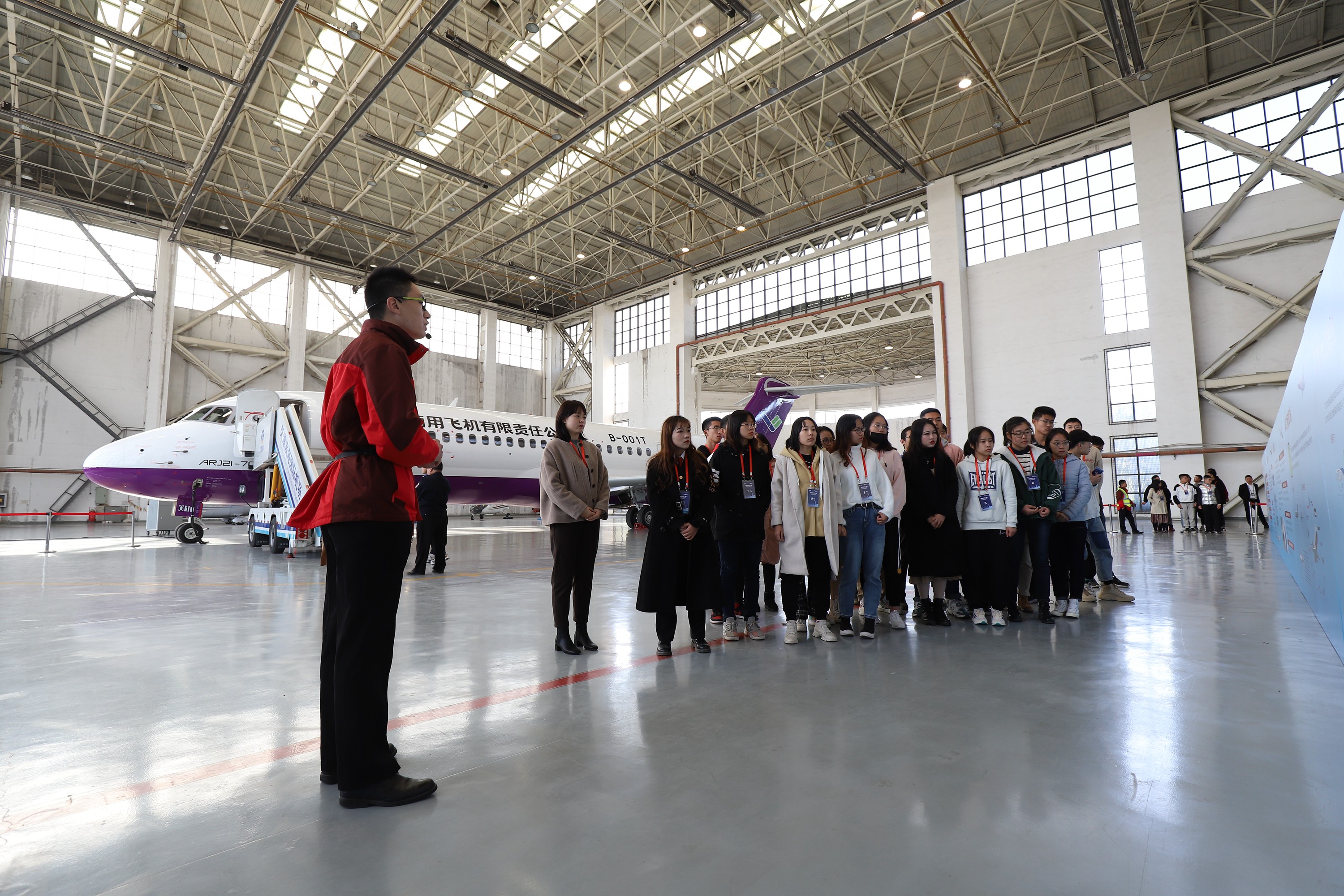 中国商飞工作人员向中航大学生介绍ARJ21-700