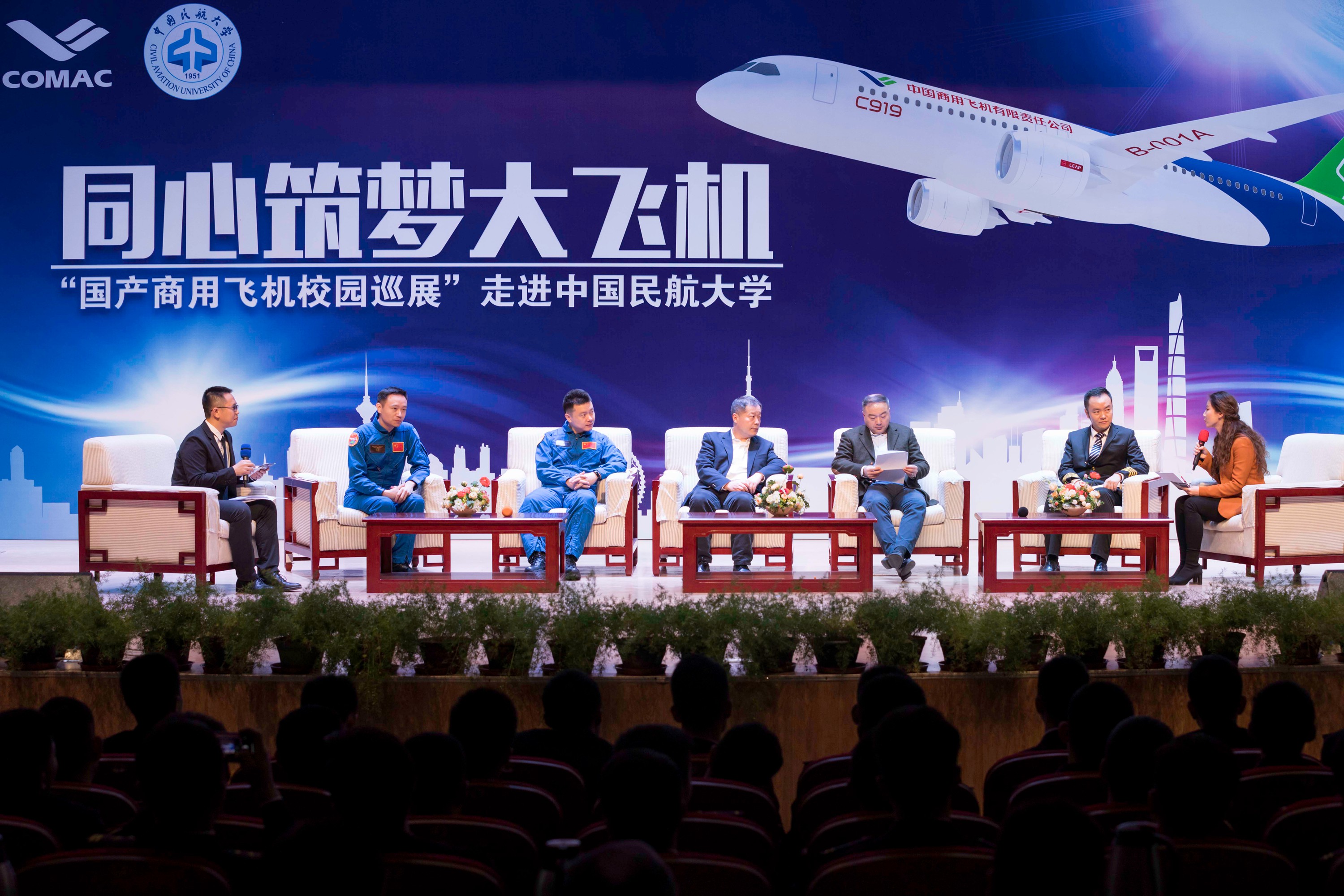 中国商飞公司成立于2008年5月11日,是实施国家大型飞机重大专项中大型客机项目的主体,也是统筹干线飞机和支线飞机发展、实现我国大飞机产业化的主要载体。巡展活动选择中航大作为首站,是双方密切合作的具体体现。2018年11月,在第十二届中国航展期间,中国商飞与中航大签署战略合作框架协议。根据协议,中国商飞与中航大将围绕发展大型客机项目的重要目标,在科技研发、成果转化、人才培养、国际合作等方面建立全面合作关系,有效利用中国商飞大型客机、支线飞机研制和商业化运作的经验,充分发挥中航大的科技、人才、信息和研究成果高度集中等优势,建立校企产学研紧密结合的长效机制。