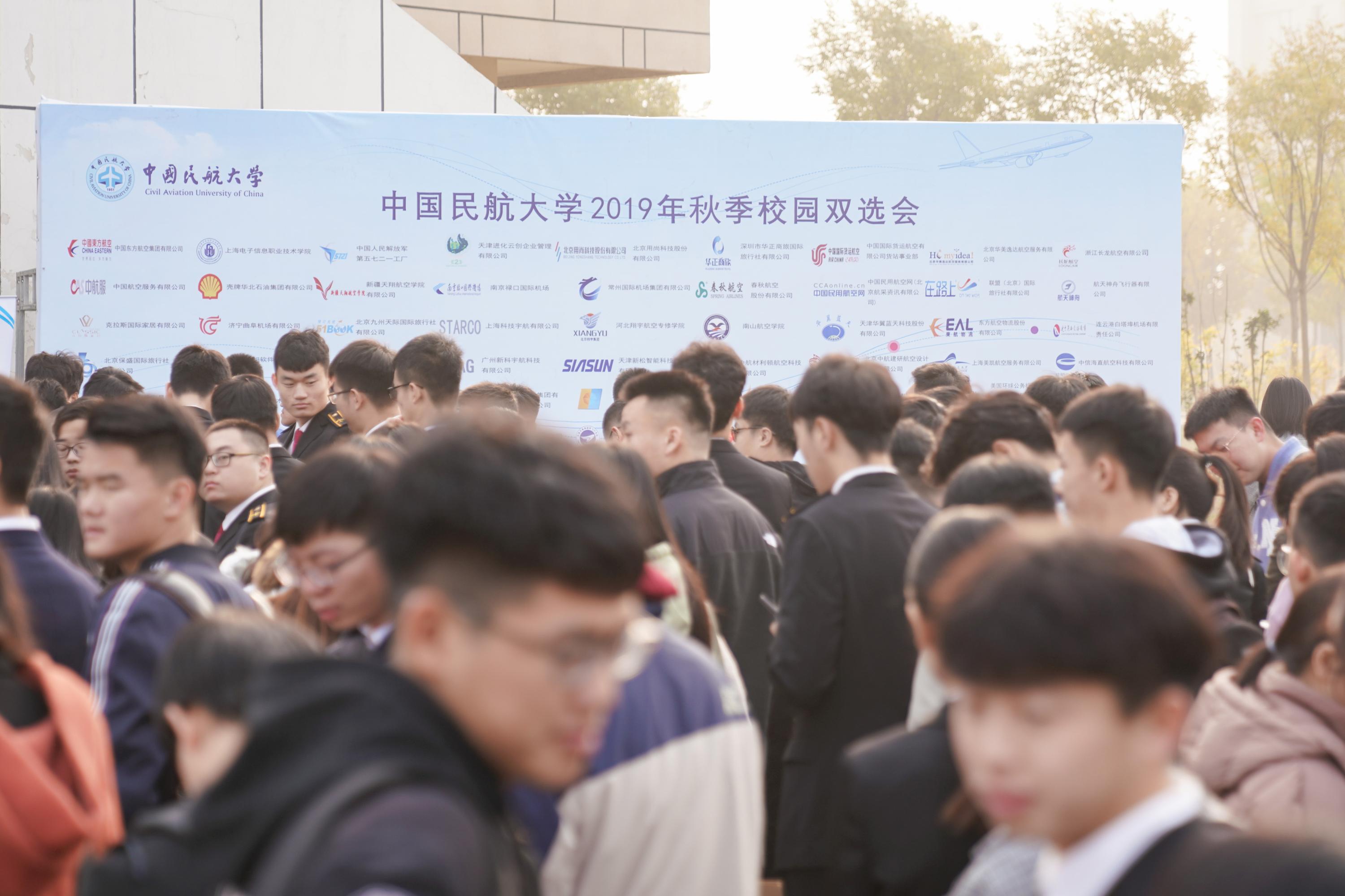 本网讯 11月9日至10日,中国民航大学2019年秋季校园双选会(以下简称“秋季双选会”)在南区至善苑举行。本次秋季双选会共有112家单位参与,较上次双选会增加18家,其中83% 以上单位为民航相关企业,提供超过3000个就业岗位,涵盖旅游、资源、信息技术等领域。