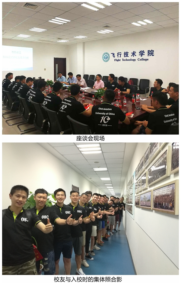 本网讯(通讯员高博)7月25日,飞行技术学院飞行技术专业2008级0C班校友返校聚会,畅谈十年成长,共叙师生情谊。飞行技术学院党委和飞行学院校友会负责人、航空理论系和辅导员参加校友返校纪念活动。