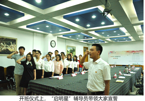 开班仪式上,中国民航大学第三届“启明星”辅导员吴延松带领2018年入职辅导员进行了庄严的入职宣誓。学工部负责人结合学校人才培养目标、发展理念以及学工部发展定位向参训辅导员提出了希望与要求:要坚定政治立场,严守政治纪律;要加强理论学习,提高理论素养;要注重工作研究,善于继承创新;要讲究工作方法,强化工作实效;要感受时代的变化,做一名新时代的学生工作者。