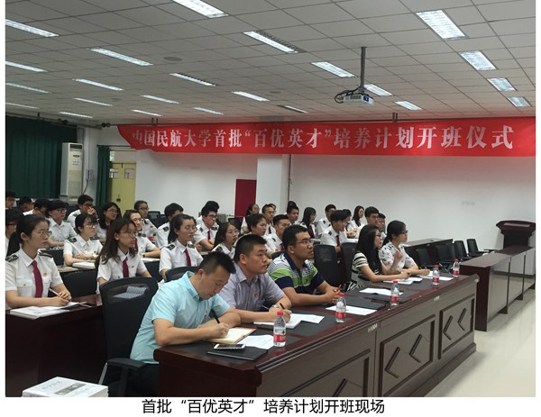 中国民航大学高度重视培养民航卓越人才工作,“百优英才”培养计划是进一步探索优秀学生培养的新模式,和推进学生培养质量持续提升的重要载体。“百优英才”班级学生由学校统一管理,统一安排理论课程、项目指导、实践活动和阶段考核,着力加强英语、民航前沿、经济管理等方面的培训,提高优秀学生的领导力和综合素质,以个性化培养促进学生成才,依托“百优英才”计划拓宽育人通道,使学生成长为精专业、有发展的高素质民航卓越引领人才。