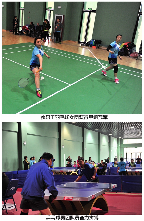本网讯(学生通讯员邬禹舟摄影沈西伟)11月25日,2017年天津市教职工乒羽比赛决赛在天津市体育学院静海团泊校区举行。中国民航大学教职工羽毛球女团力克天津体育学院获得甲组冠军,羽毛球男团获甲组季军,乒乓球男团获甲组第五名,乒乓球女团获甲组第五名,各项成绩全部刷新学校参赛天津市教职工乒羽记录。