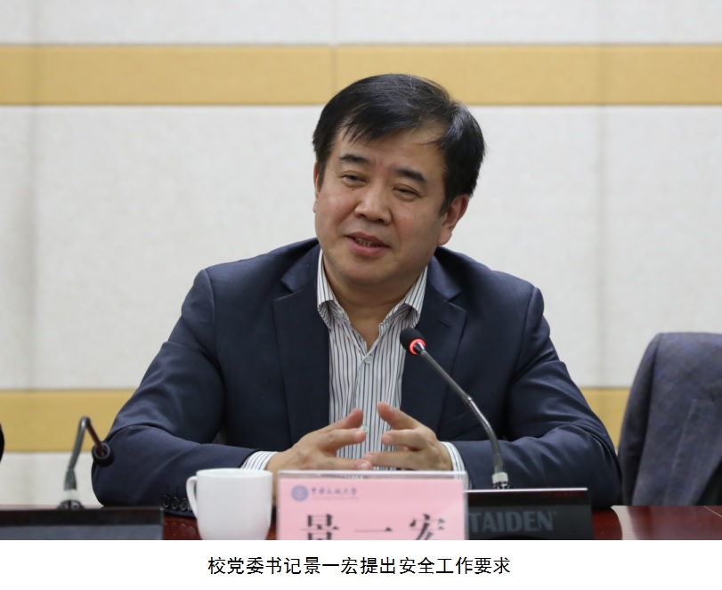 景一宏说,隐患无处不在,事故就在身边,安全工作无小事,要进一步提高安全认识,时刻保持警钟长鸣。要强化安全工作责任制,以保障学生的健康和安全为核心,共担责任,协同配合,促进校园安全。他强调,随着经济社会的快速发展,安全范畴不断扩大,安全压力与日俱增,对此要有清晰认识和正确判断。要毫不动摇地抓隐患、抓防控,确保校园安全。