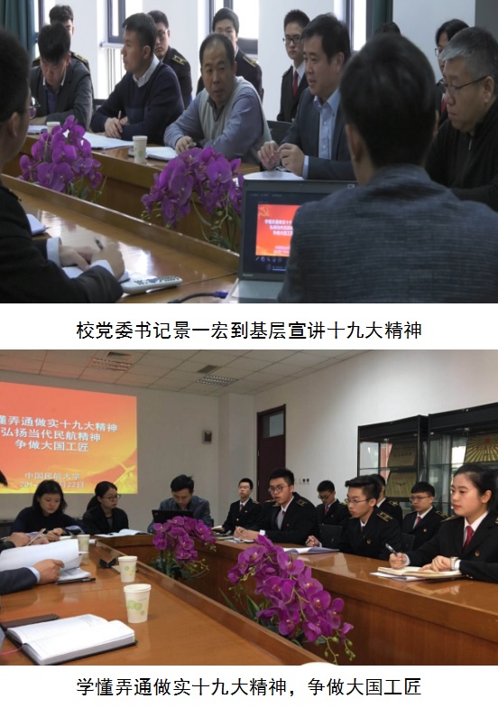 景一宏领学了十九大报告中的学习要点,结合首届中国民航机务维修岗位职业技能大赛决赛和全国高校思想政治工作会议精神指出,学校大力培养具有工匠精神的社会主义建设者和接班人就是十九大报告“以人民为中心”的体现,落实立德树人根本任务,坚持“四个服务”,才能为民航事业培养更多优秀人才。