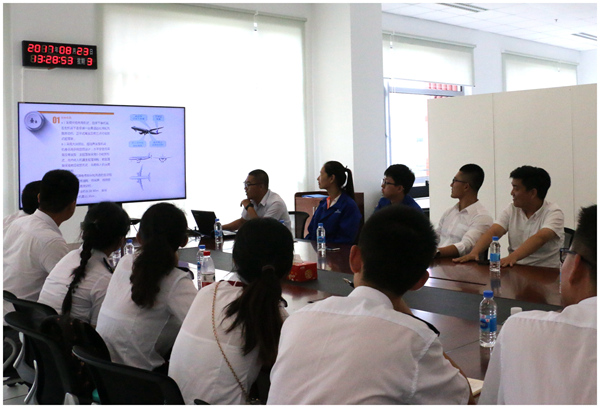 暑期社会实践队员冯汉卿说:“C919大飞机带给我们的是震撼和荣耀,背后却是一代代民航人血与泪的凝结,这更加赋予了我们作为一名民航学子的责任与使命。”