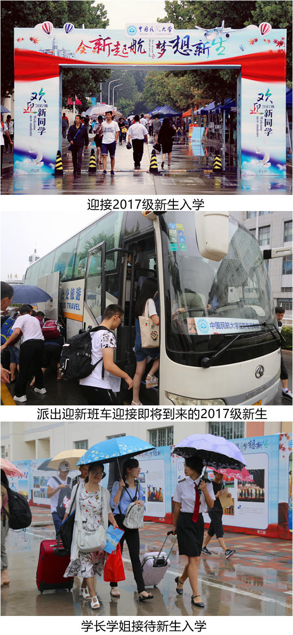 虽然天公不作美,整个迎新过程都伴随着小雨,但是迎新的热情不减。校园内随处可见带有民航元素的迎新标识,学校食堂中午不休息,为新生及家长提供避雨和休息场所。