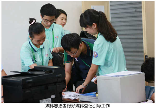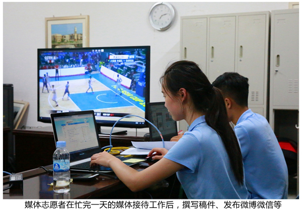 礼貌、微笑,他们用诚挚的态度为媒体记者服务,面对突发状况,积极协调,用最快时间解决问题,保障赛事报道工作不出一丝差错。