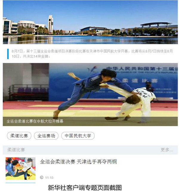 本网讯(记者陈红叶摄影王思文)8月7日至10日,第十三届全运会柔道项目比赛在中国民航大学举行。开赛两天,共有59家媒体158人次媒体记者前来报道赛事。党委宣传部与新华社客户端合作开设专题,报道中航大全运会相关情况。