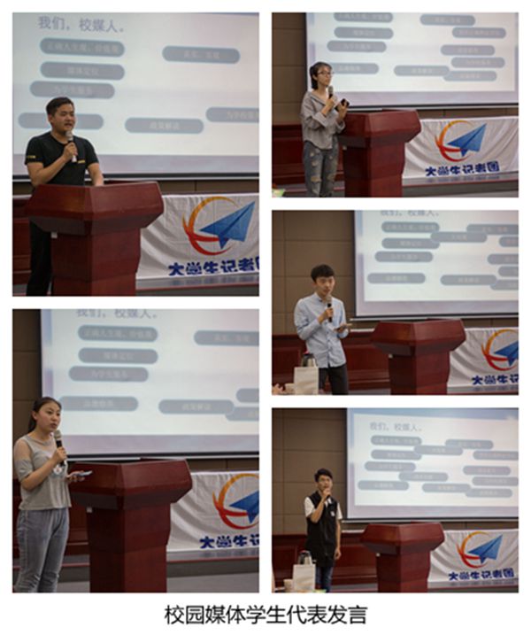 大学生记者团的团长袁彬策划筹备了此次团庆和校媒融合研讨会,时间紧,任务重,在这过程中也遇到了很多困难。“虽然五四青年节已经过去了,但是我们要一直牢记五四精神,作为校媒人,更要‘不忘初心’,借着记者团五周年团庆的契机,希望能促进校媒融合,共同传播校园文化。”