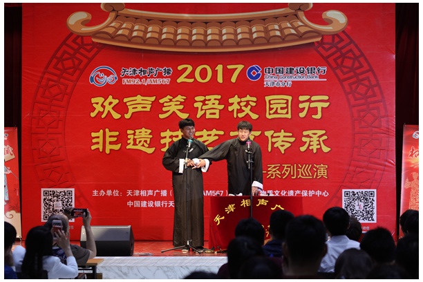 “欢声笑语校园行,非遗技艺有传承”系列巡演活动已经开展了十余年之久。多年来,该活动给包括南开大学、天津大学、中国民航大学在内的9所高校带来了近百场精彩的相声表演。“相声拥有着丰富的文化底蕴和内涵,希望可以通过我们的宣传让更多的人了解相声,接触相声,学习相声。”天津市FM92.1相声广播副总监骆宾强调。
