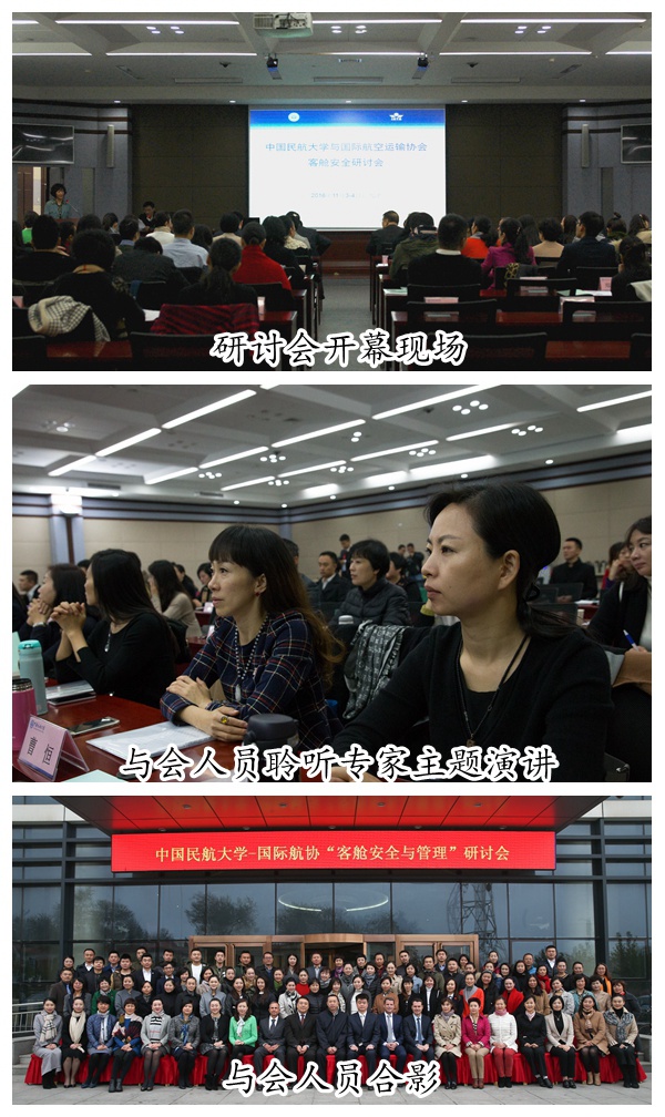 本网讯(记者何喜莲摄影庞杰 大学生记者团)11月3-4日,中国民航大学与国际航协联合举办的2016年客舱安全与管理研讨会在天津召开,就国际航协客舱安全最新进展、促进公众客舱安全教育、文化挑战、客舱乘务员培训、航空运输业现状趋势与挑战、航空公司安全管理等专题进行研讨。