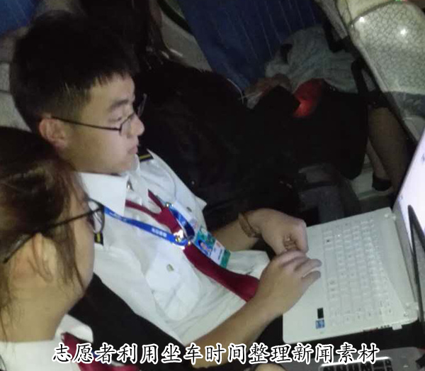学生志愿者的首要任务是做好航展的接待和服务工作,用中文和英语向前来咨询的中外访者介绍学校。航展从早上8时左右入场到5时左右离开,4个学生一站几乎就是9个小时,两个女生的脚在第一天就被磨出了血泡,两个男生在志愿服务的同时,随时要扛着摄像机和照相机拍摄记录素材。回到酒店后,他们将执行第二项任务——媒体宣传、素材整理。四个人选取这一天中记录下来的素材,进行加工整理,几乎每天都要忙碌到次日凌晨。在整理当日的新闻后,还要做好第二天的服务准备和新闻策划。