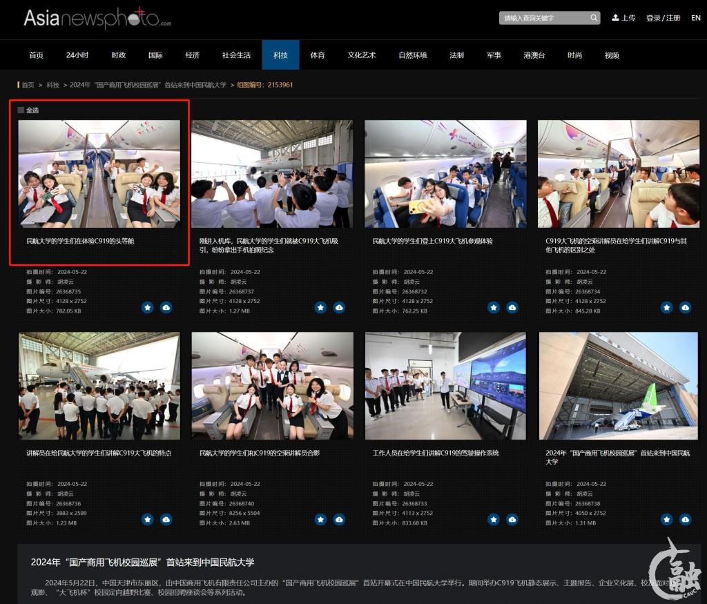 2024年5月22日,中国天津市东丽区,由中国商用飞机有限责任公司主办的“国产商用飞机校园巡展”首站开幕式在中国民航大学举行。期间举办C919飞机静态展示、主题报告、企业文化展、校友面对面、观影、“大飞机杯”校园定向越野比赛、校园招聘座谈会等系列活动。