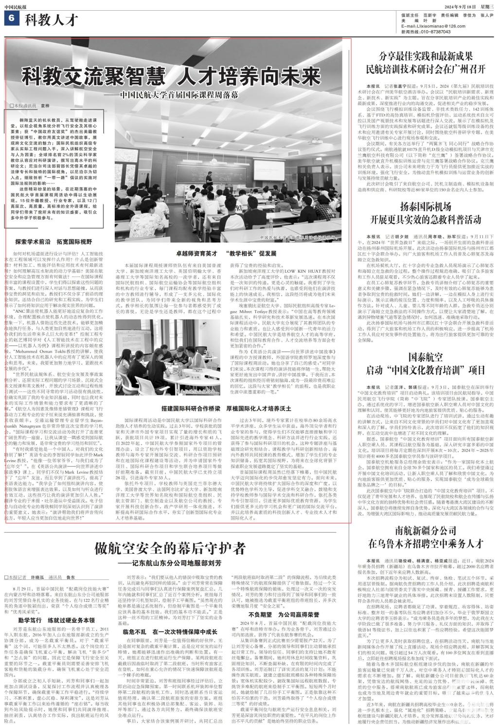 首届国际课程周虽然已经落下帷幕,但中国民航大学迈向国际化的步伐却愈发坚定有力。面向未来,中国民航大学将持续扩大国际合作的深度和广度,以优势特色学科为主导,促进学科交叉融合,鼓励和支持学校教师参与国际学术交流和科研合作,依托各类外专引智项目,引进更多国际优质教育资源,为学生们提供更多元的学习机会和更广阔的国际交流平台,并以此培养高素质的科技创新人才、专业技术人才和国际化人才。