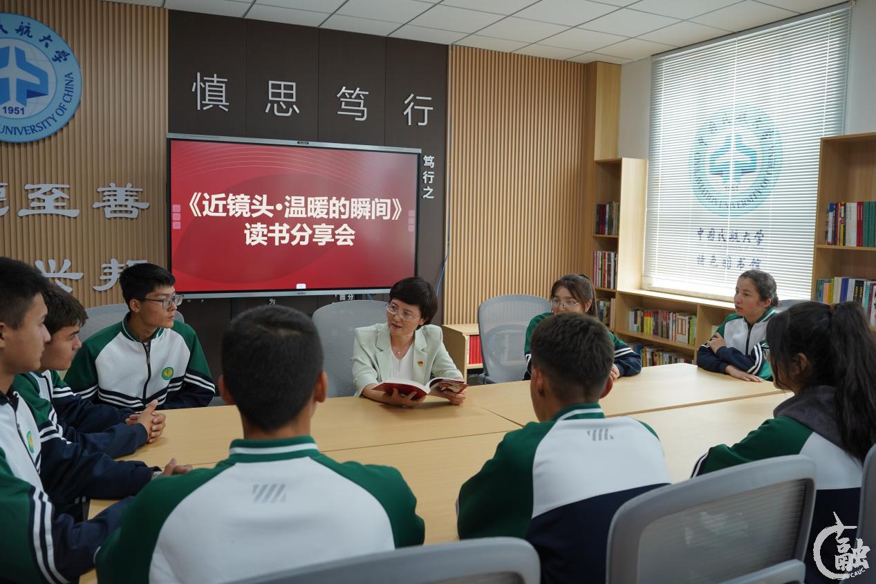 9月29日,新疆和田地区策勒县第一中学部分师生在“中国民航大学特色图书馆”开展《近镜头:温暖的瞬间》读书分享活动