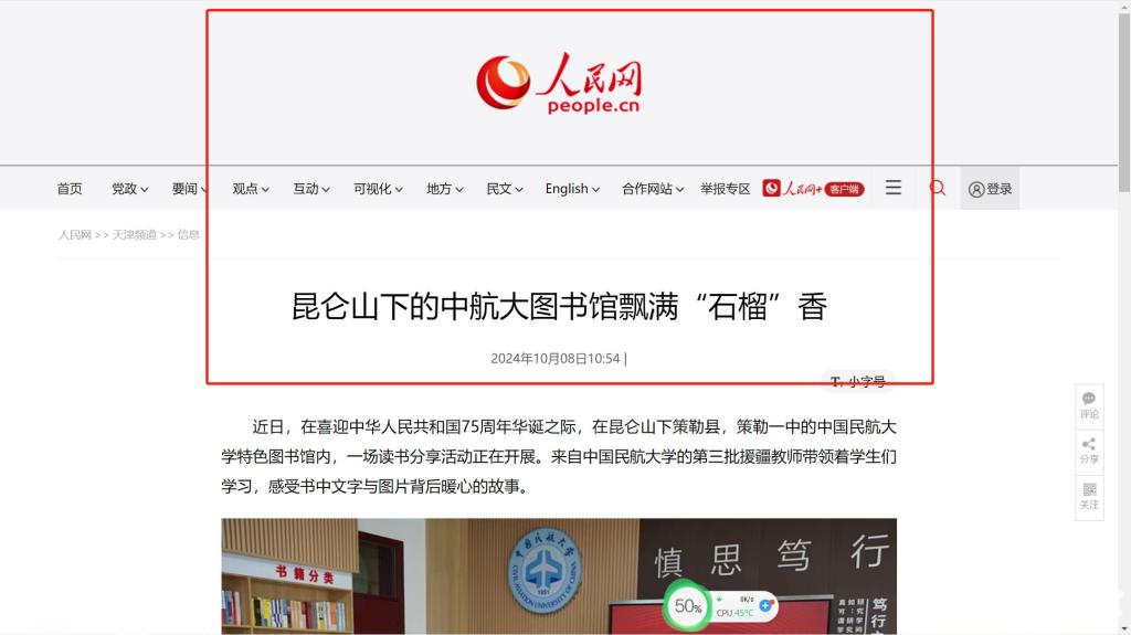 近日,在喜迎中华人民共和国75周年华诞之际,在昆仑山下策勒县,策勒一中的中国民航大学特色图书馆内,一场读书分享活动正在开展。来自中国民航大学的第三批援疆教师带领着学生们学习,感受书中文字与图片背后暖心的故事。