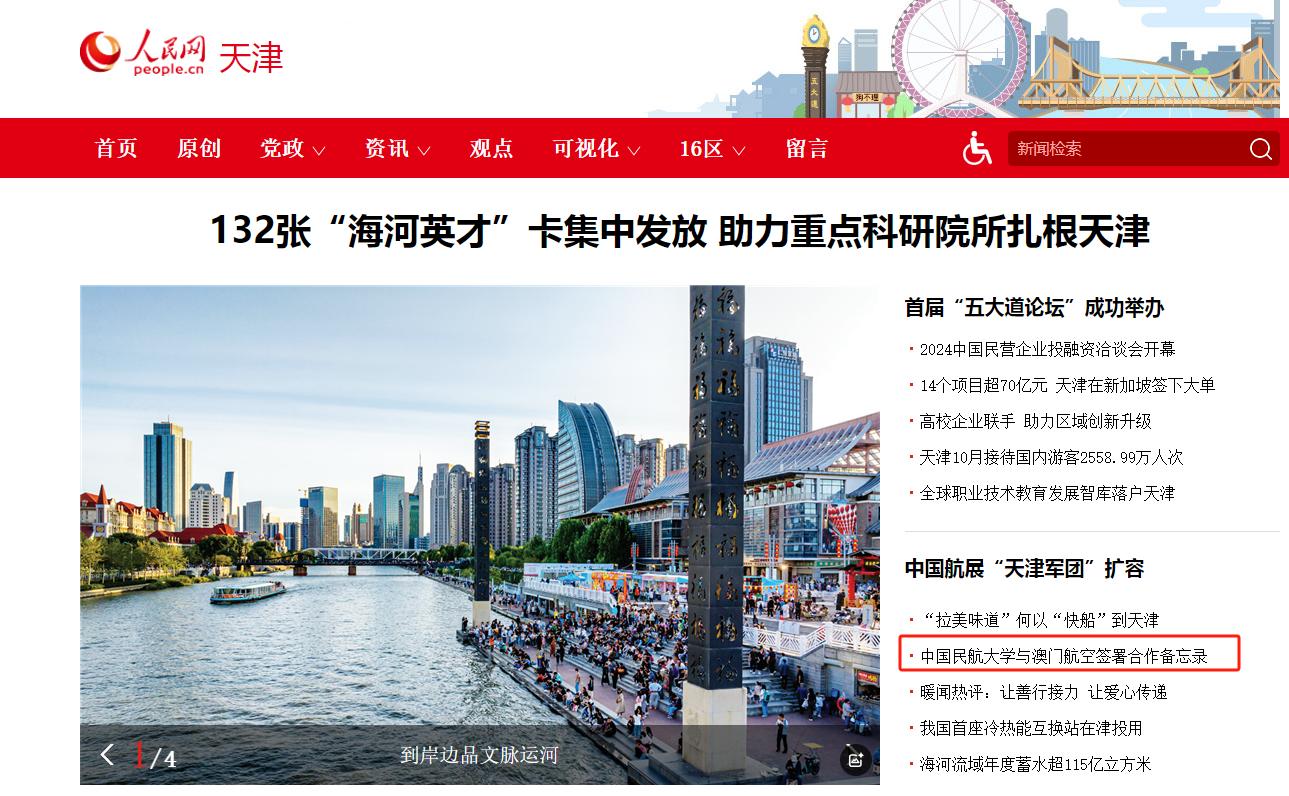 本报讯(记者 姜凝)记者昨天从中国民航大学获悉,该校与澳门航空股份有限公司(以下简称澳门航空)在第十五届中国国际航空航天博览会上签署合作备忘录,双方本着“互惠互利、共同发展”的原则,进一步深化人才培养机制,共同培养航空国际化应用型人才,为粤港澳大湾区建设、交通强国建设贡献更大力量。
