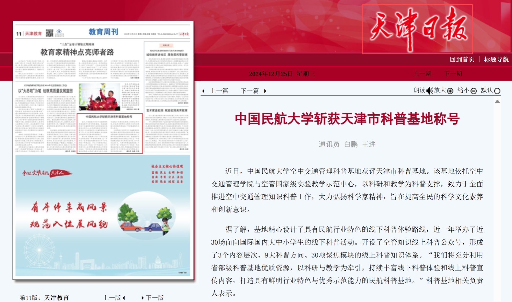 2024年12月25日《天津日报》: