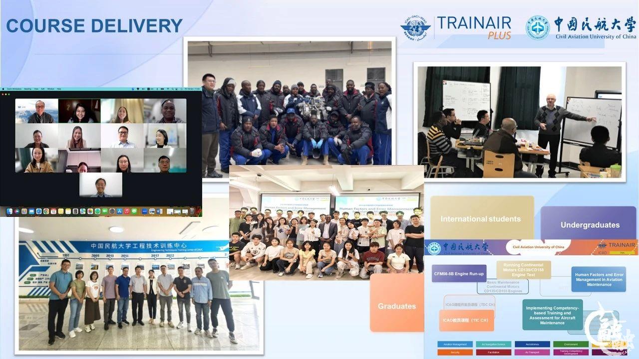 为促进优质教育资源服务人才培养,以ICAO标准课程资源为基础,探索本科课程改革与专业课程国际化研究。与国外高校及国际行业单位协作开展国际课程教学,组织开展面向本科生、研究生、留学生的国际课程教学活动,促进ICAO课程与学历课程融合,支持具备国际胜任力的复合型工程技术人才培养。同时,通过国际师资交流、校企实践学习等多种形式,不断加强国际化师资团队建设。目前,1名教师获得ICAO课程审核员资质,38名教师取得ICAO教员培训证书,78名教师取得ICAO课程开发员培训证书。