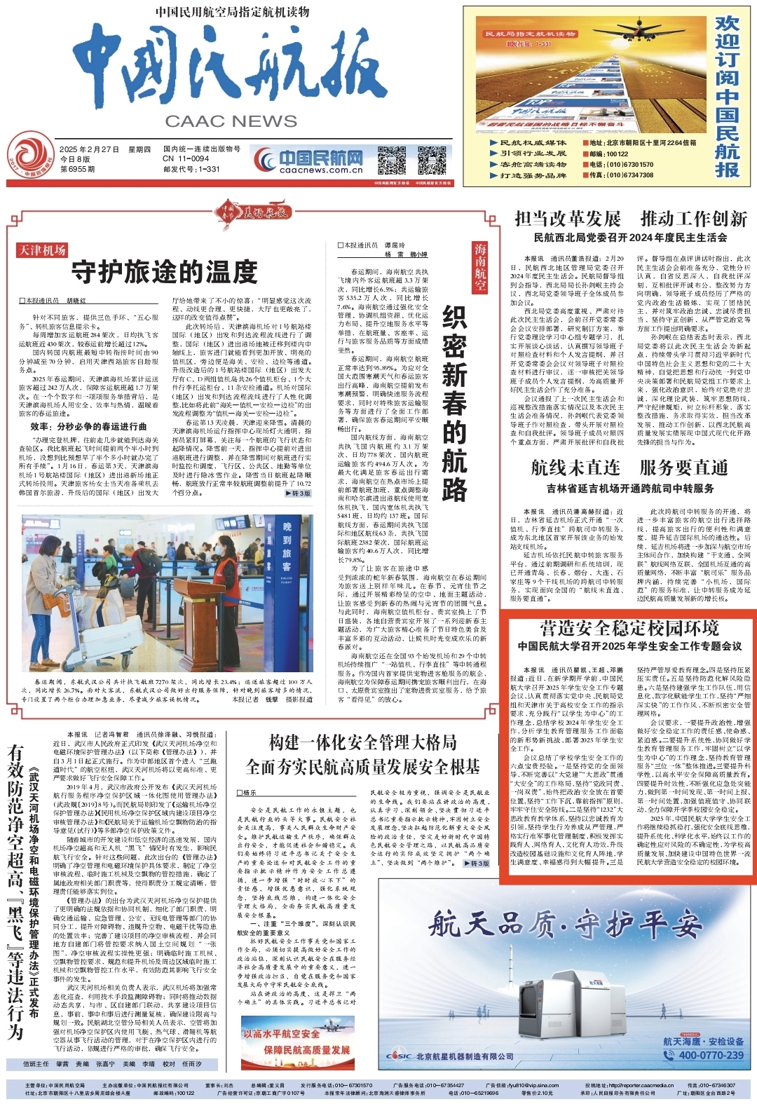2025年02月27日 《中国民航报》头版: