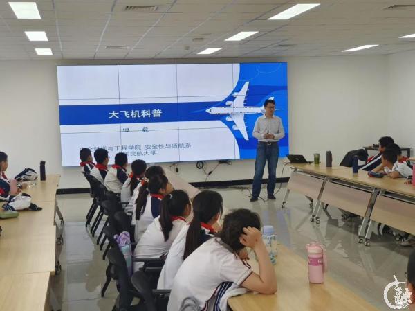 天津北方网讯:为激发学生们的科技探索欲望,普及航空航天知识,厚植爱国主义情怀,近日,东丽区丽泽小学的学生们走进中国民航大学东丽校区,开展“探秘航空航天 共筑苍穹之梦”为主题的世界航天日研学活动。