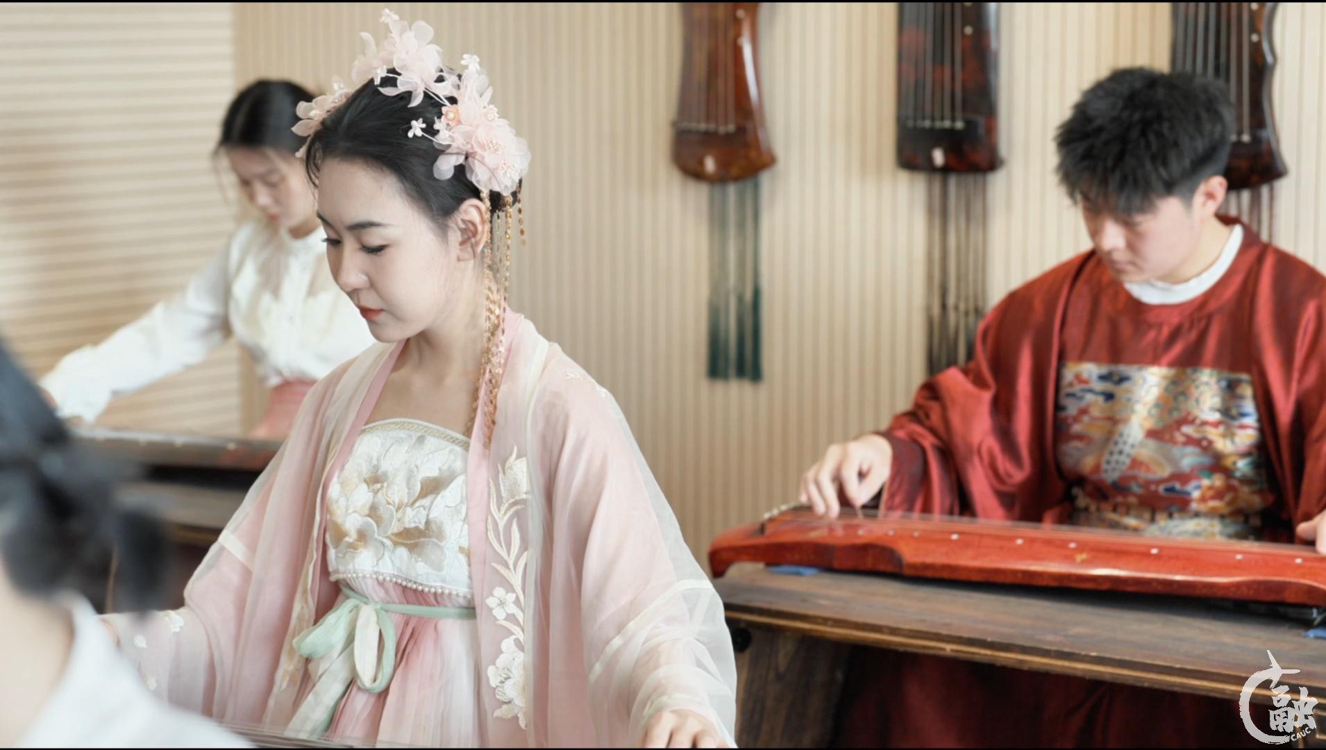 王碧娇是中国民航大学航空服务艺术与管理专业大三的学生。在学校的美育中心里,茶文化、古琴都是大家的必修课。在这里,零基础的同学也可以从按弦取音、托、抹、挑、勾等最基础的指法学起。