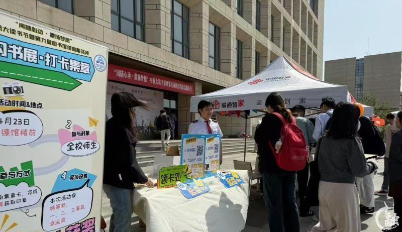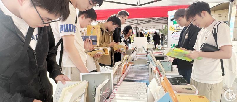 “快闪书展·打卡集章”活动精彩纷呈,墨香与欢笑声交织,书页翻动声似奏响一曲悠扬的求知乐章,为校园增添了一抹别样的亮色。明德馆前广场的现场人头攒动。活动融合了趣味性与知识性,设置了多项打卡任务,包括关注图书馆公众号答题闯关、参与“滚可乐”数字资源推介小游戏、现场借书等。此次读书节期间,学校图书馆还将举办创意大赛、阅读推广、专题讲座、资源推介等丰富多彩的文化活动。