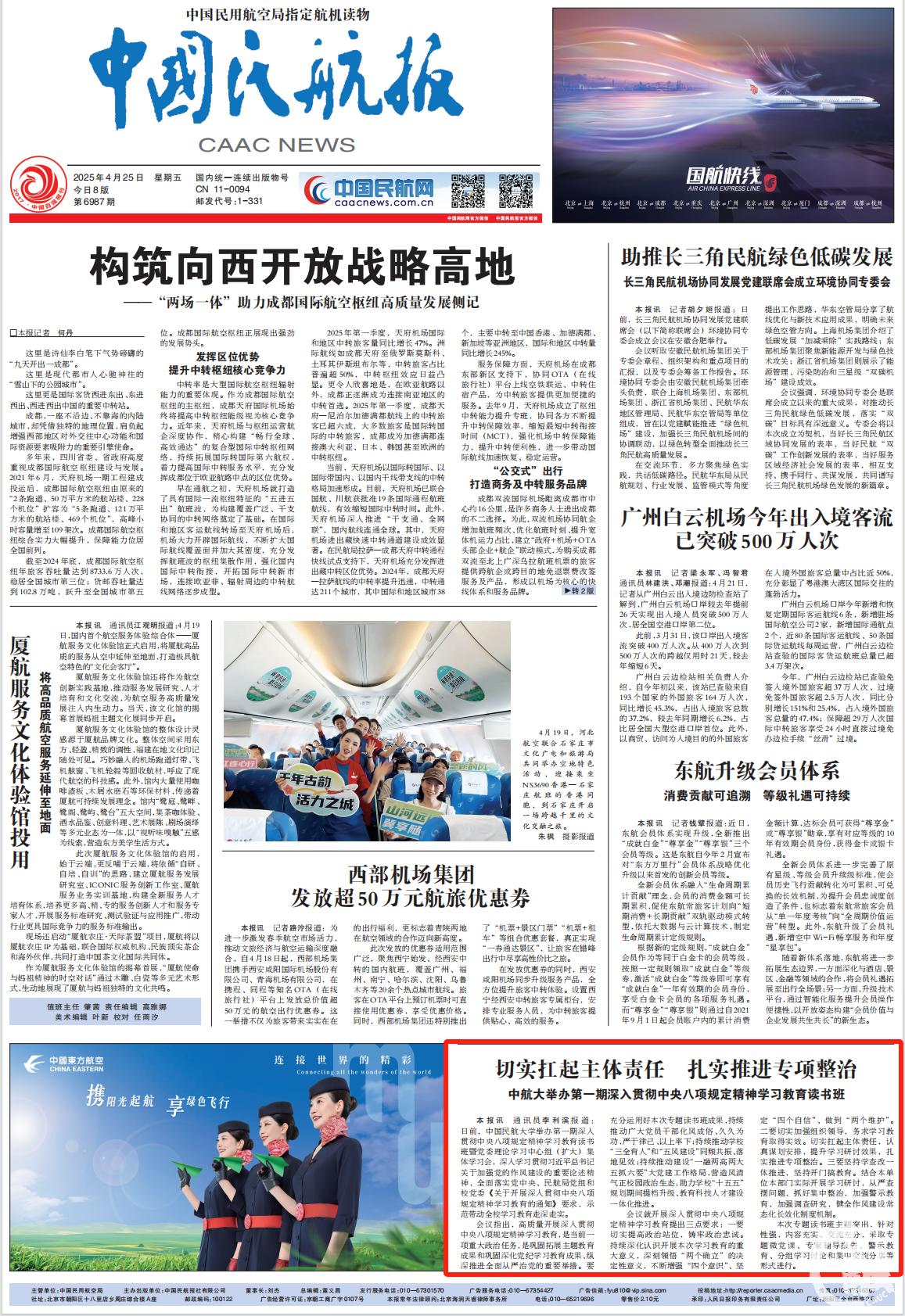 2025年4月25日 《中国民航报》头版: