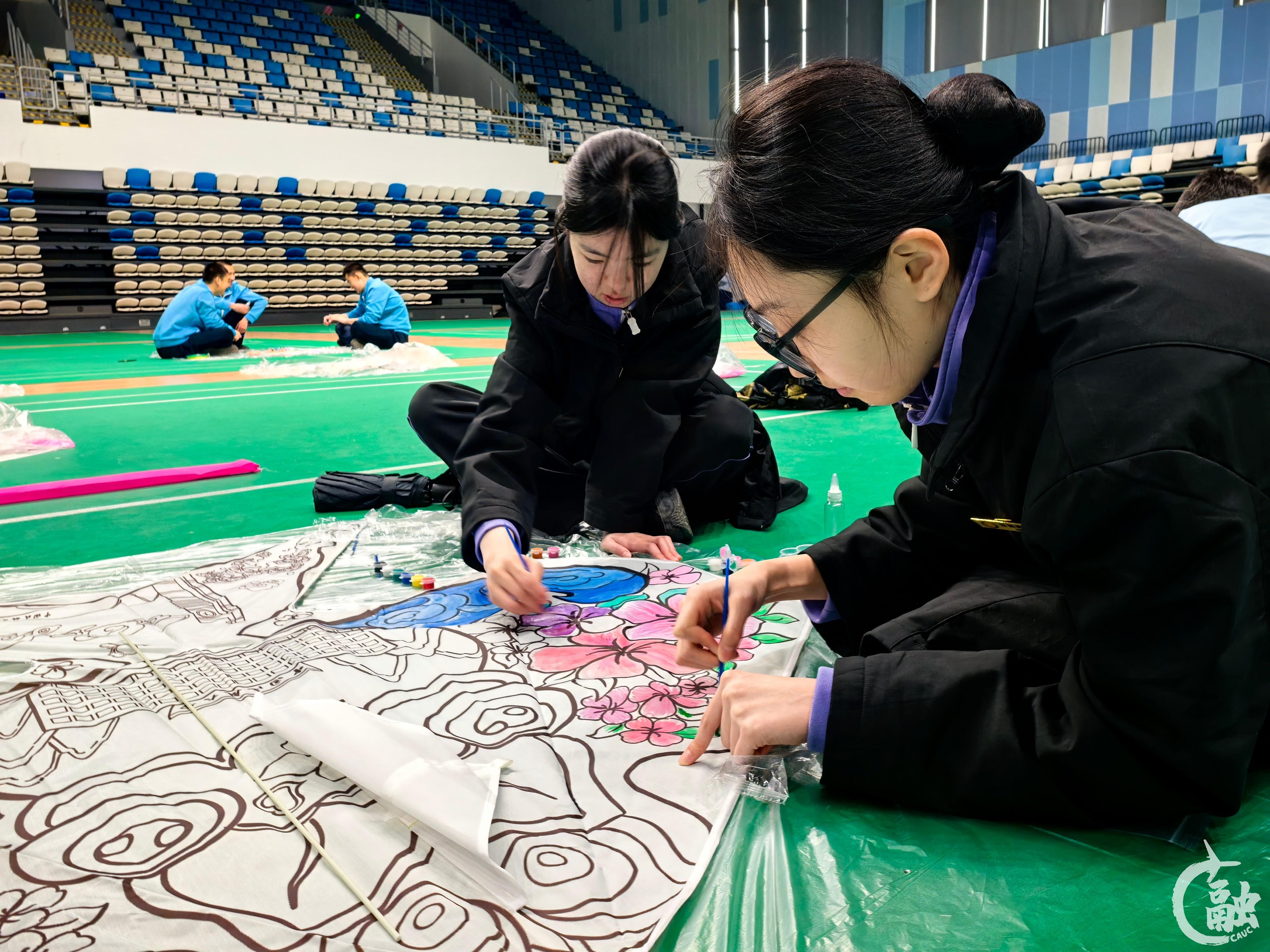 同学们绘制中航大专属定制风筝 来源:中国民航大学