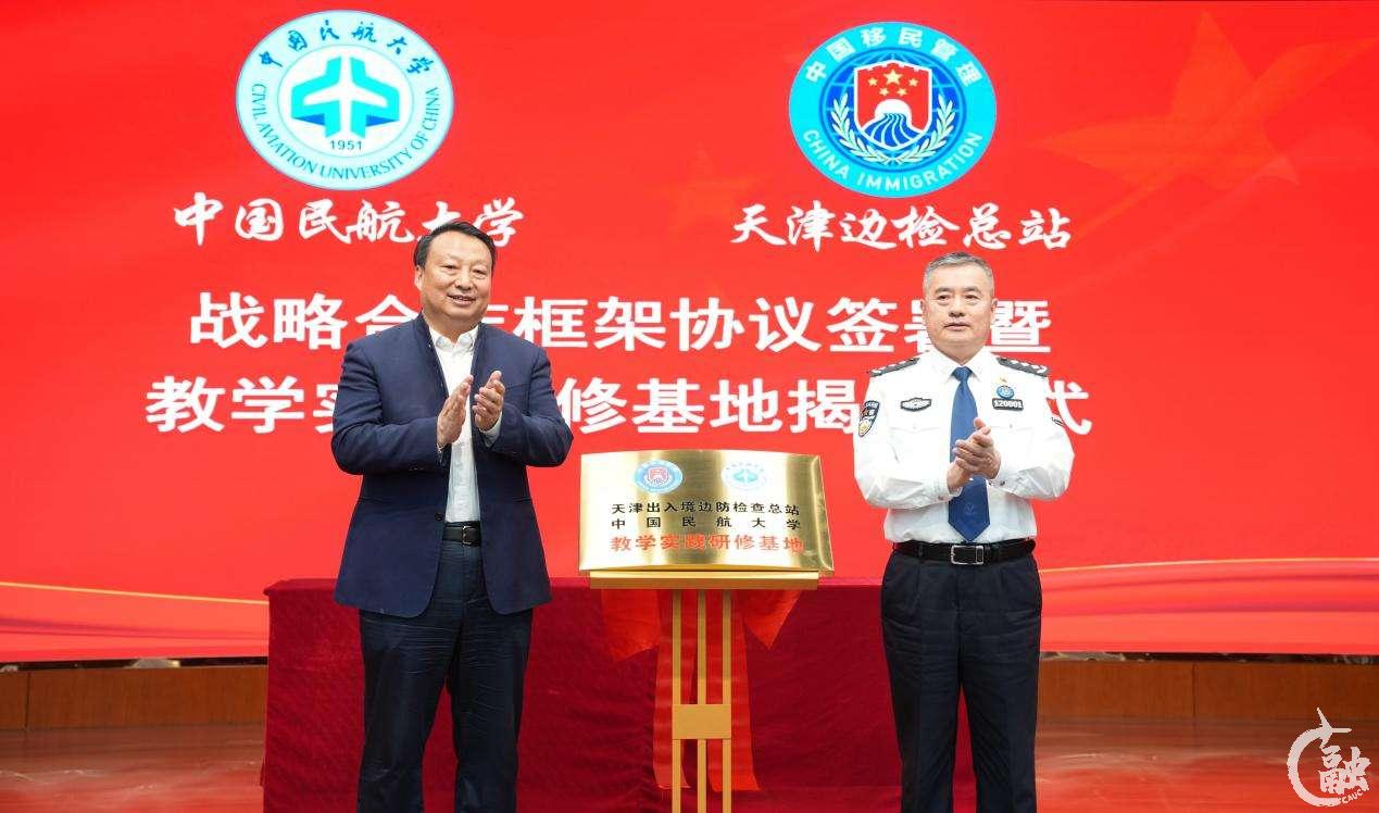 5月9日,中国民航大学与天津出入境边防检查总站(以下简称“天津边检总站”)战略合作框架协议签署暨“教学实践研修基地”揭牌仪式在天津边检总站警官培训基地举行。双方着眼于提升工作质效的共同目标,充分发挥双方各自优势,构建条块结合、资源共享、优势互补、共筑共建的工作体系,促进双方各类资源有机整合、有效利用,不断推动双方共同发展进步。