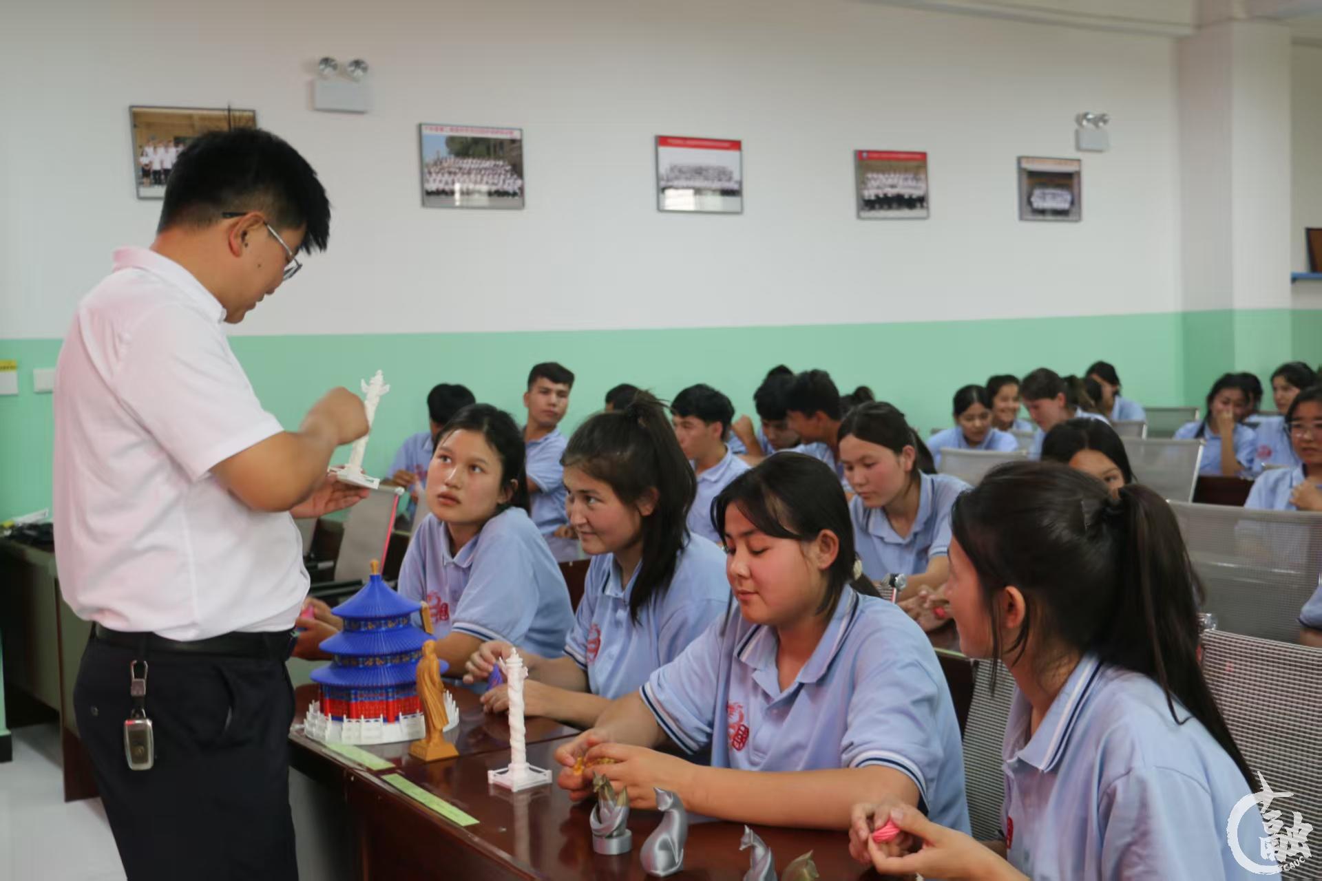在打印机嗡鸣声中,象征中华文明的“天坛”穹顶、华表,展现民航特色的飞机模型,广受青少年喜爱的“孙悟空”渐次成型。百余件作品从设计到落地,历经两个月的精雕细琢,每一道纹路都凝结着学子们对科技援疆的热忱。
