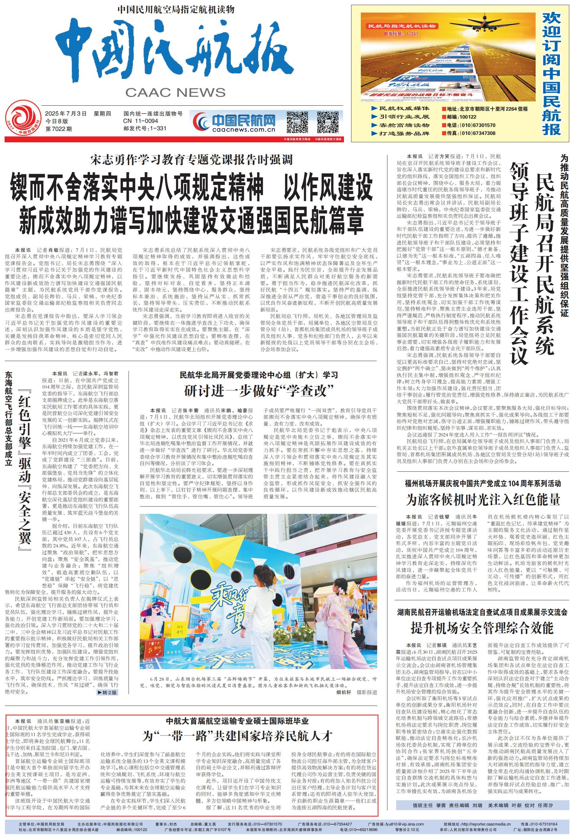 2025年7月3日 《中国民航报》头版: